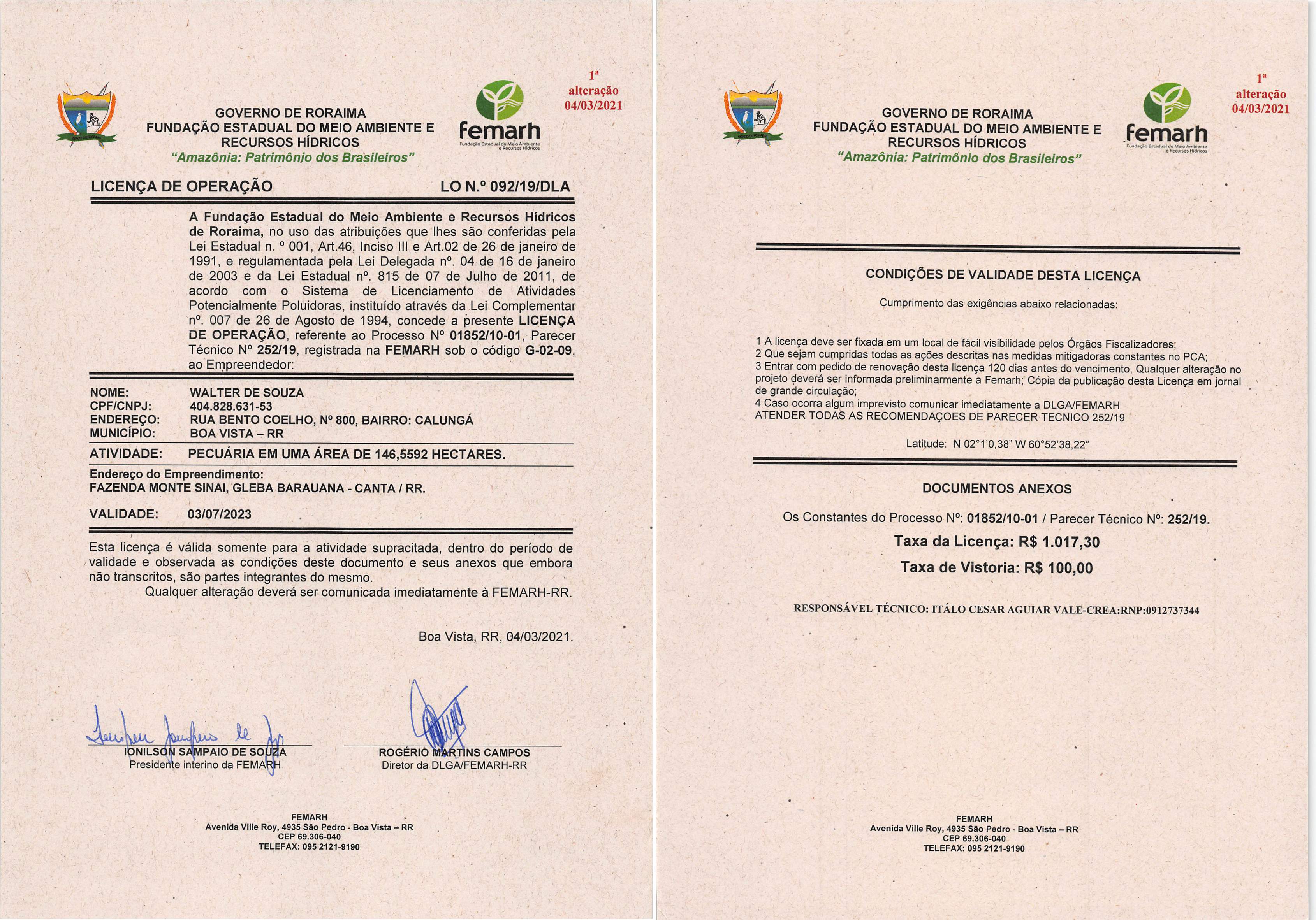 Licença de Operação LO Nº 092/19/DLA