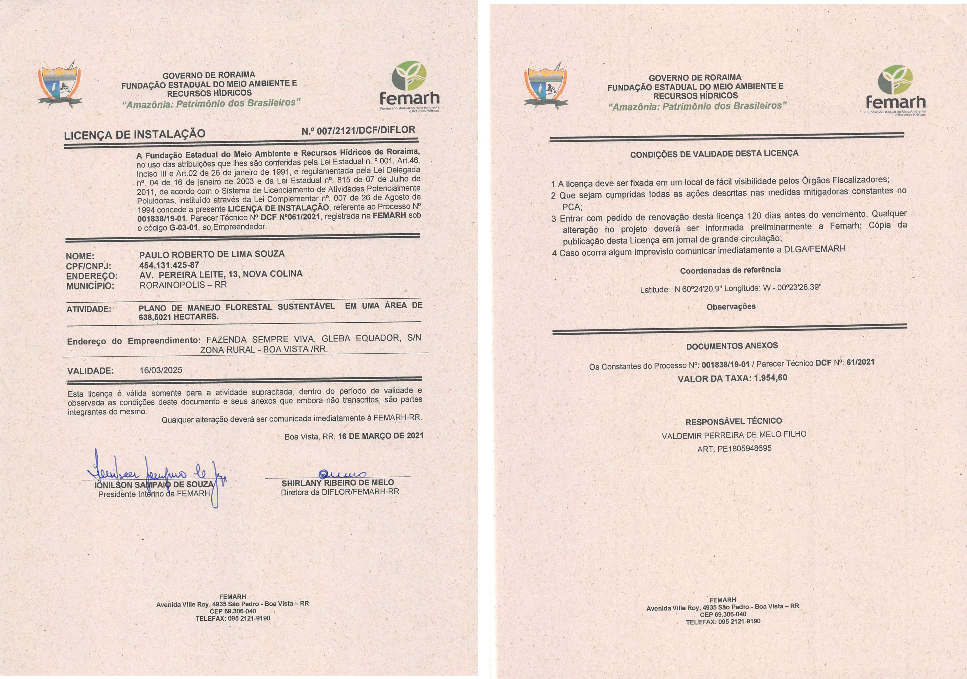 Licença de Instalação Nº LI 007/2021/DCF/DIFLOR