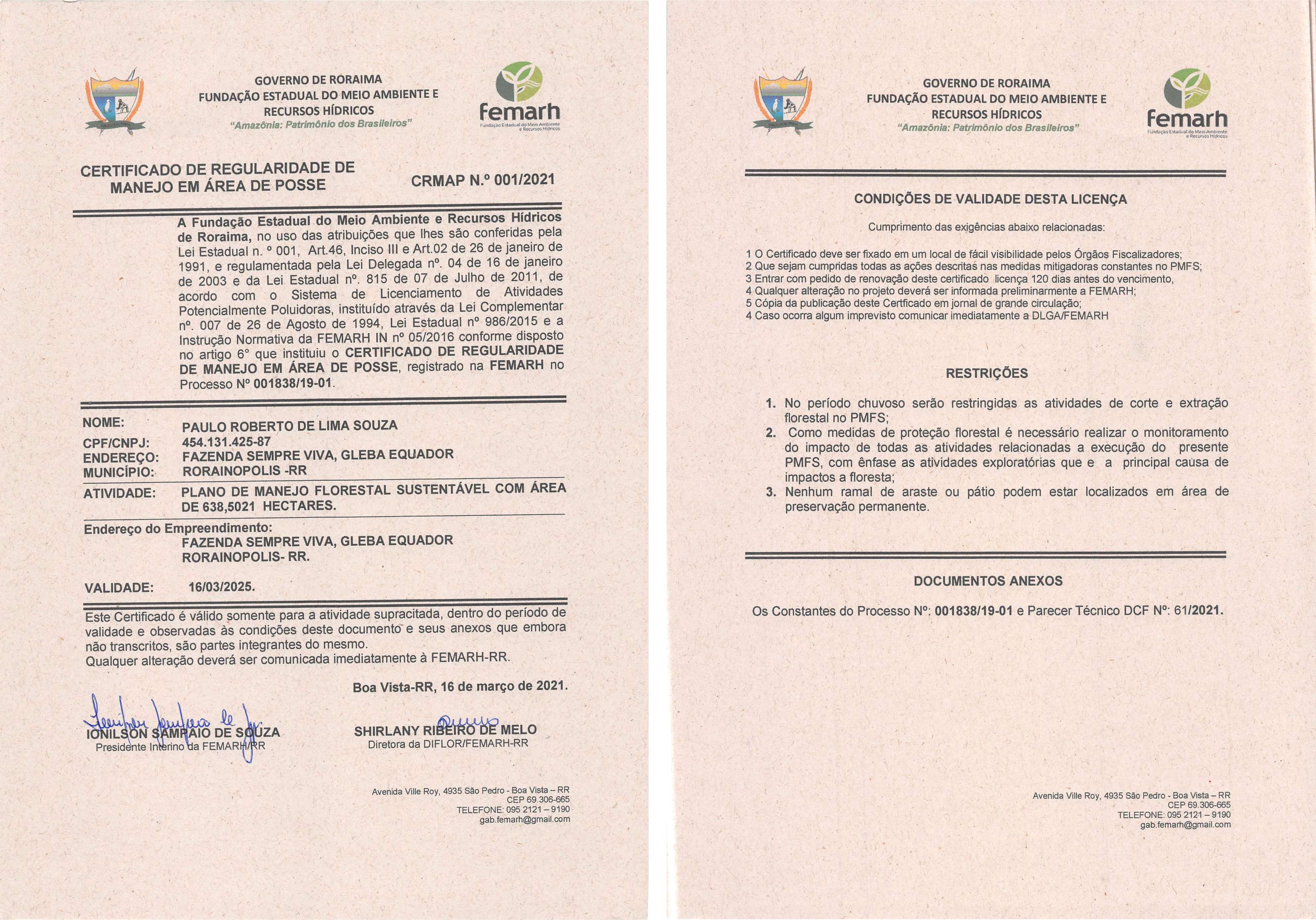 Certificado de Regularidade de Manejo em Área de Posse