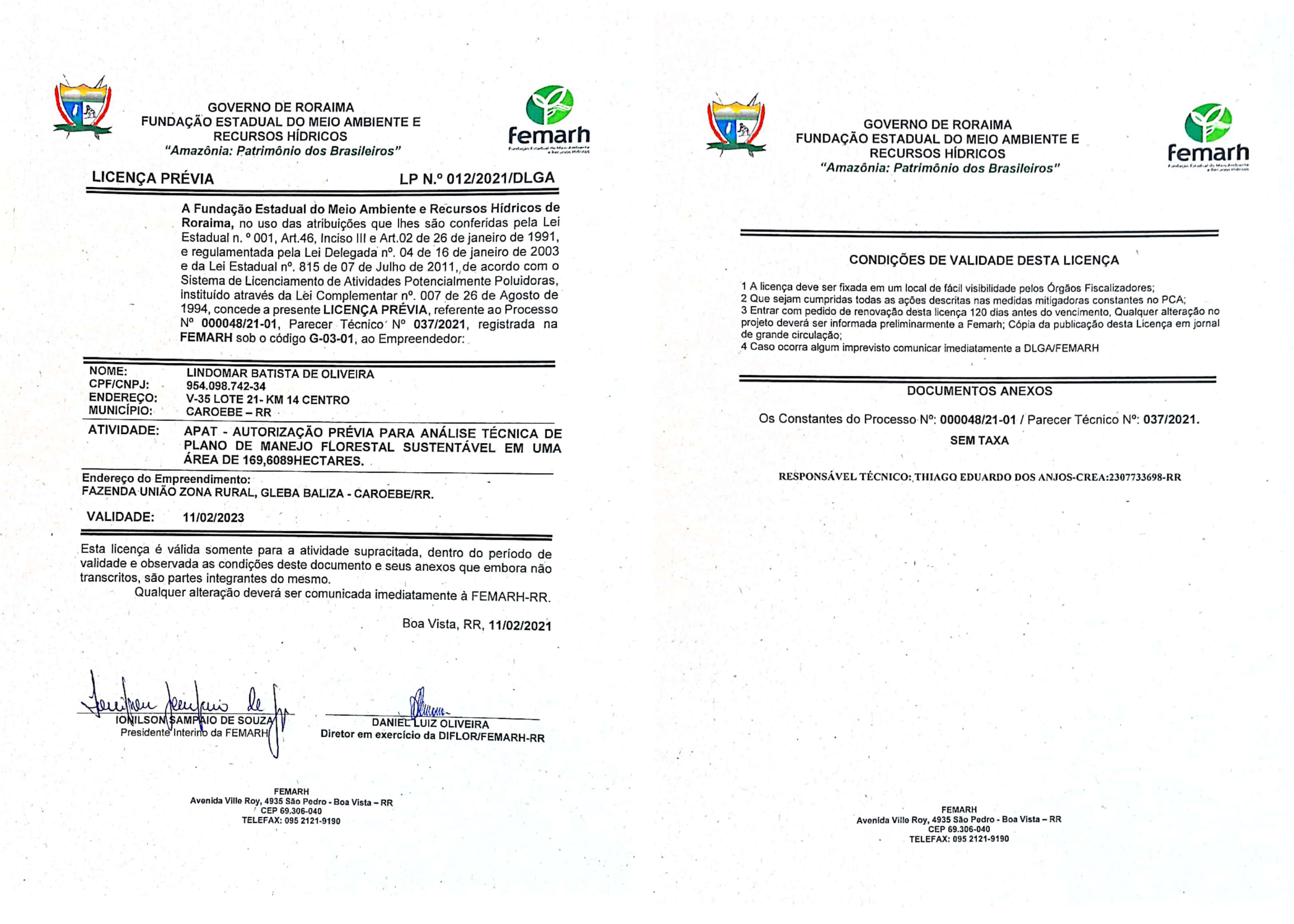 Licença Prévia LP Nº 012/2021/DLGA