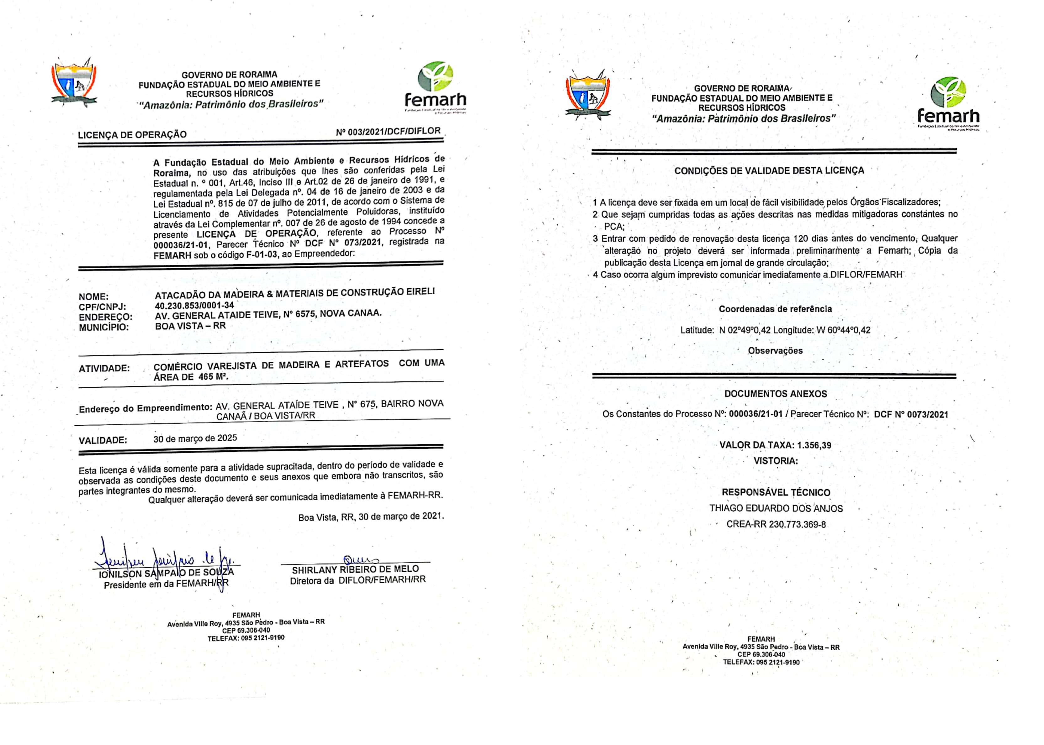 Licença de Operação LO Nº 003/2021/DCF/DIFLOR