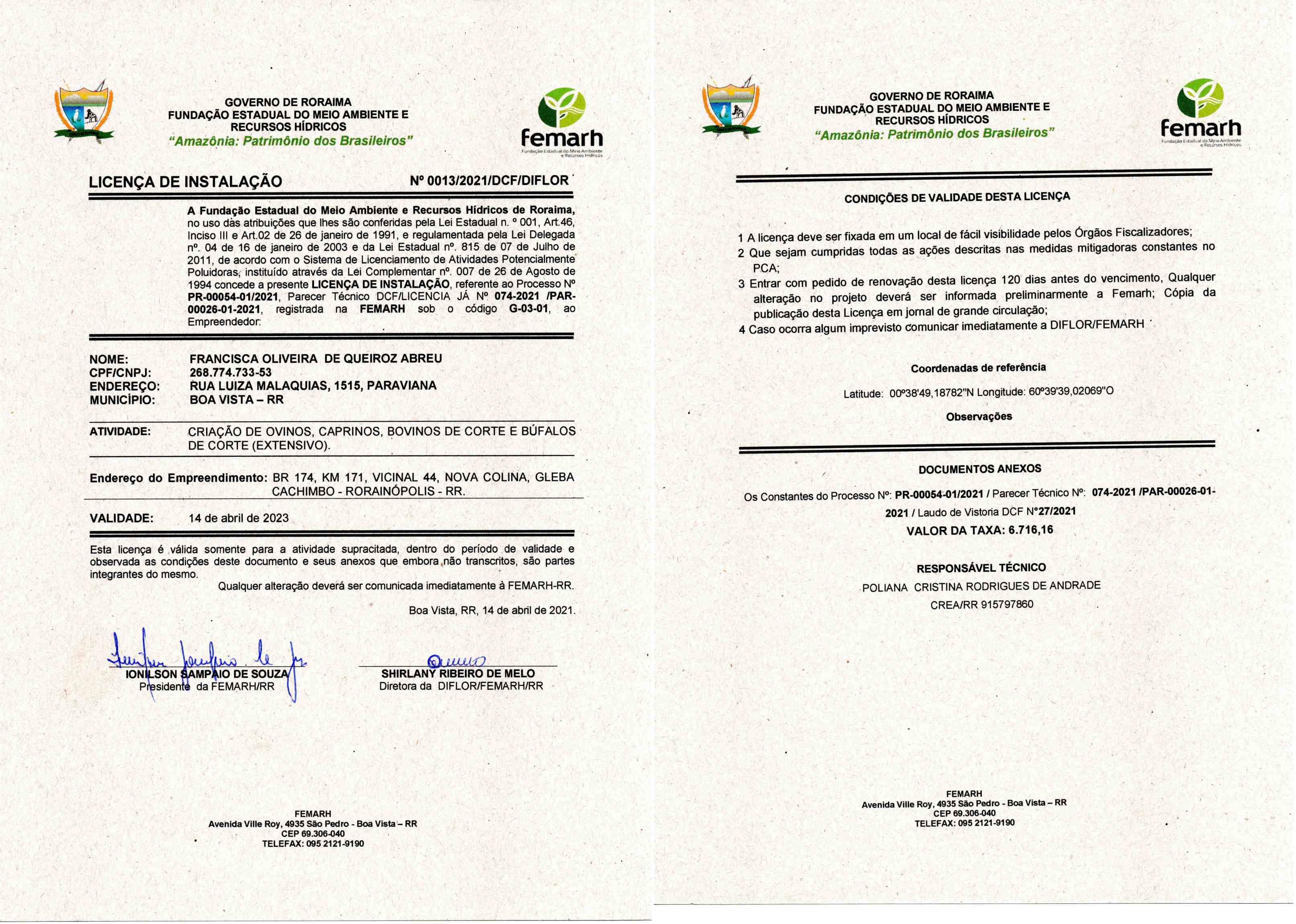 Licença de Instalação Nº LI 0013/2021/DCF/DIFLOR