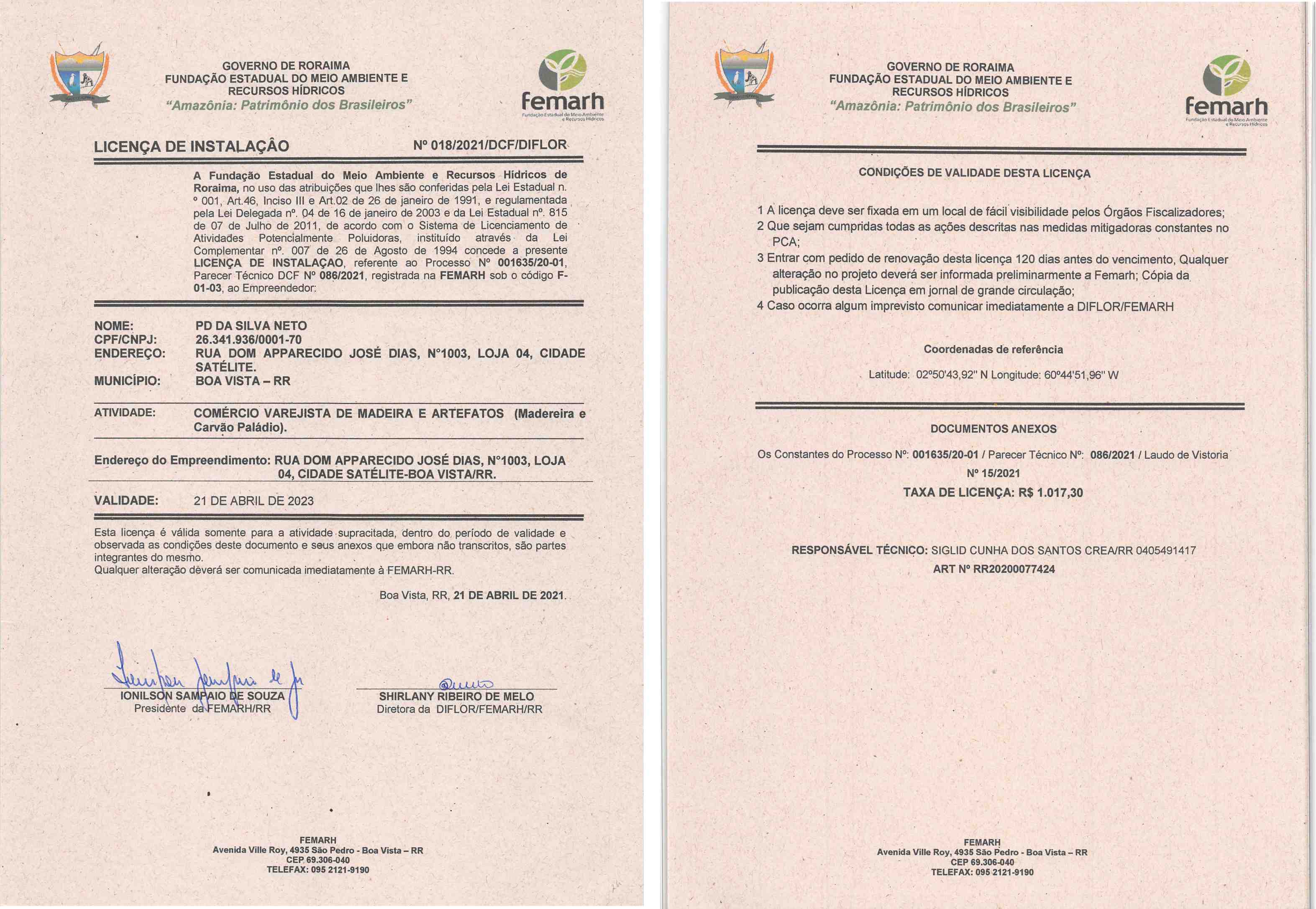 Licença de Instalação Nº LI 018/2021/DCF/DIFLOR