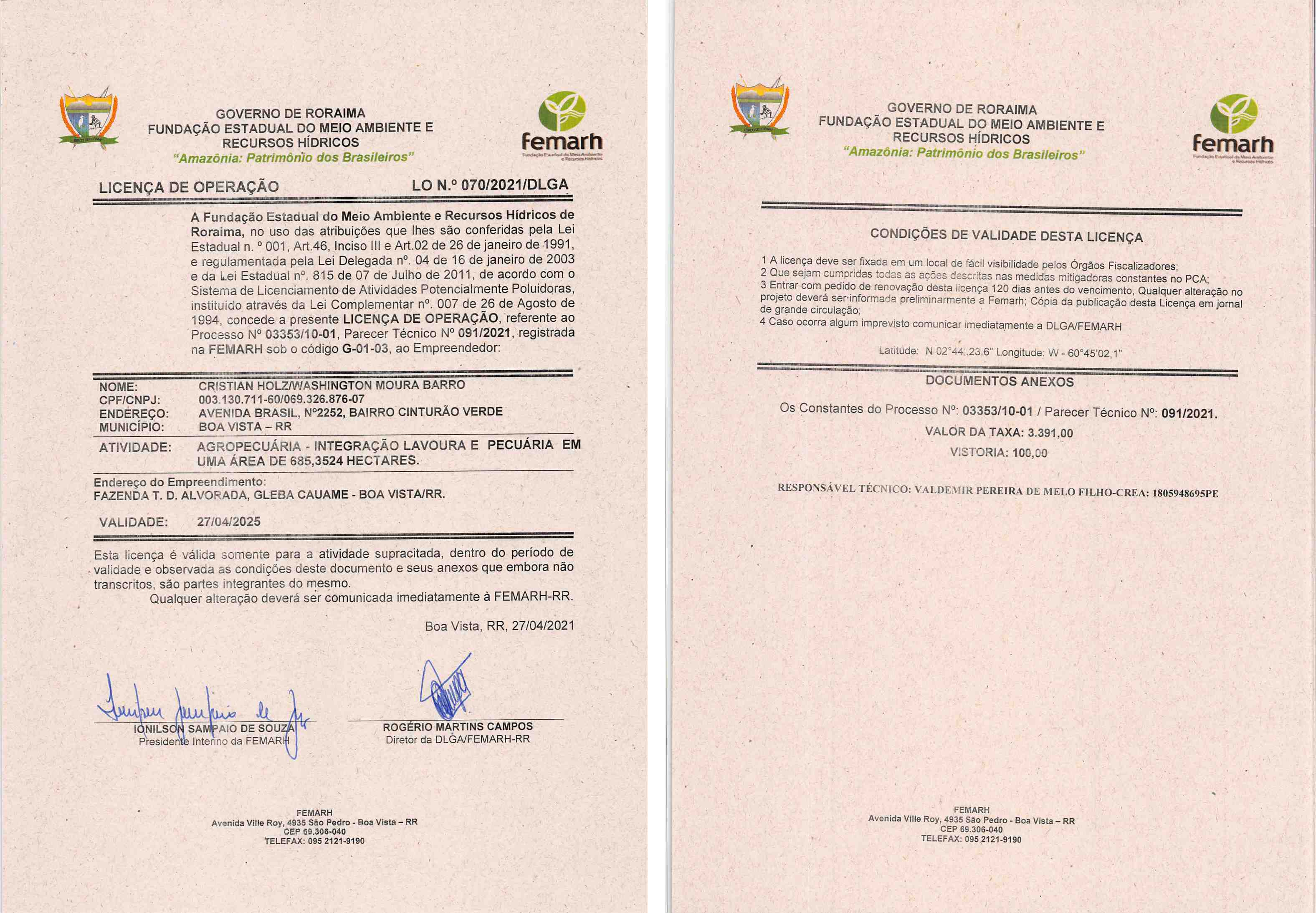 Licença de Operação LO Nº 070/2021/DLGA