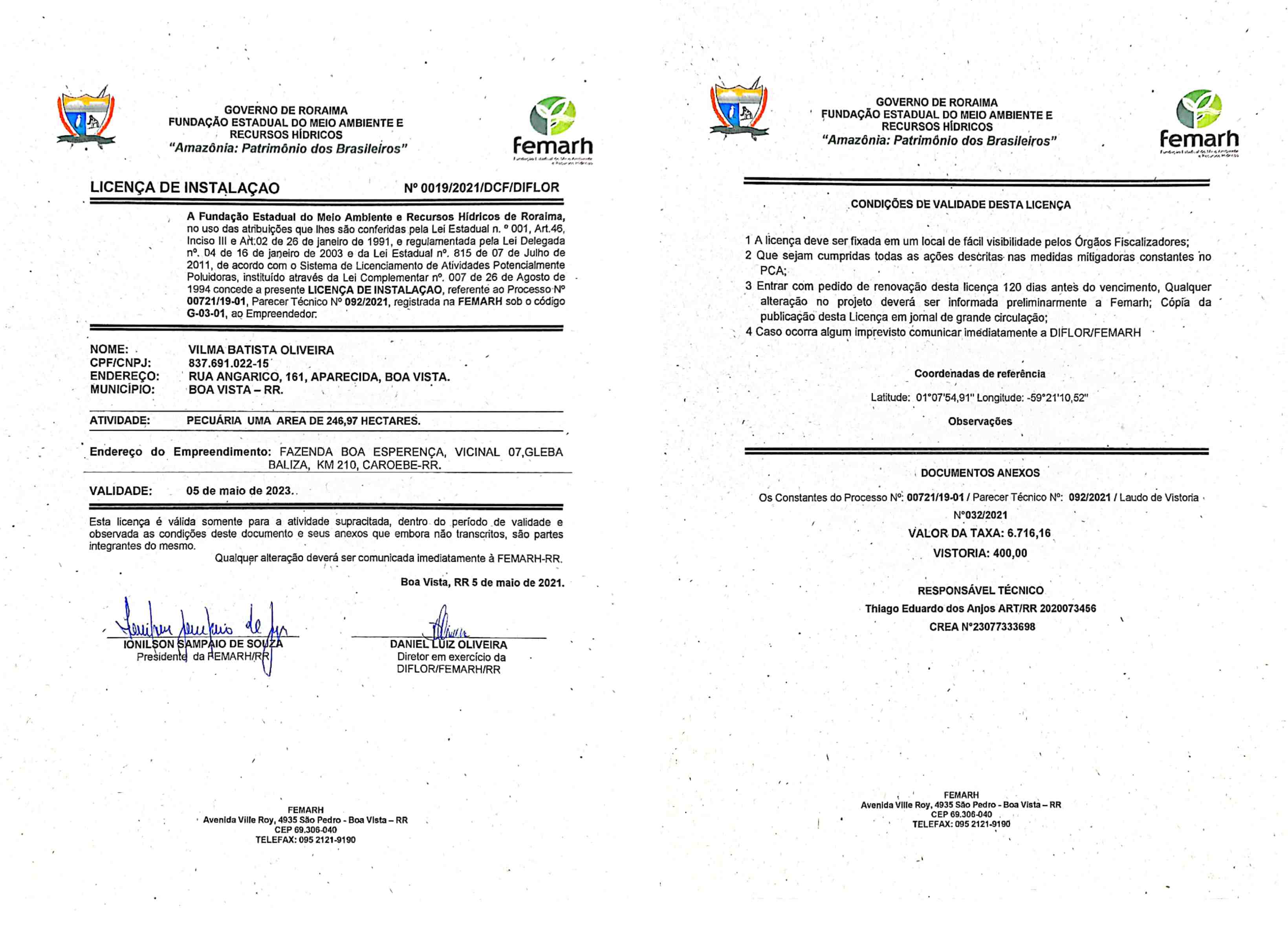 Licença de Instalação Nº LI 0019/2021/DCF/DIFLOR