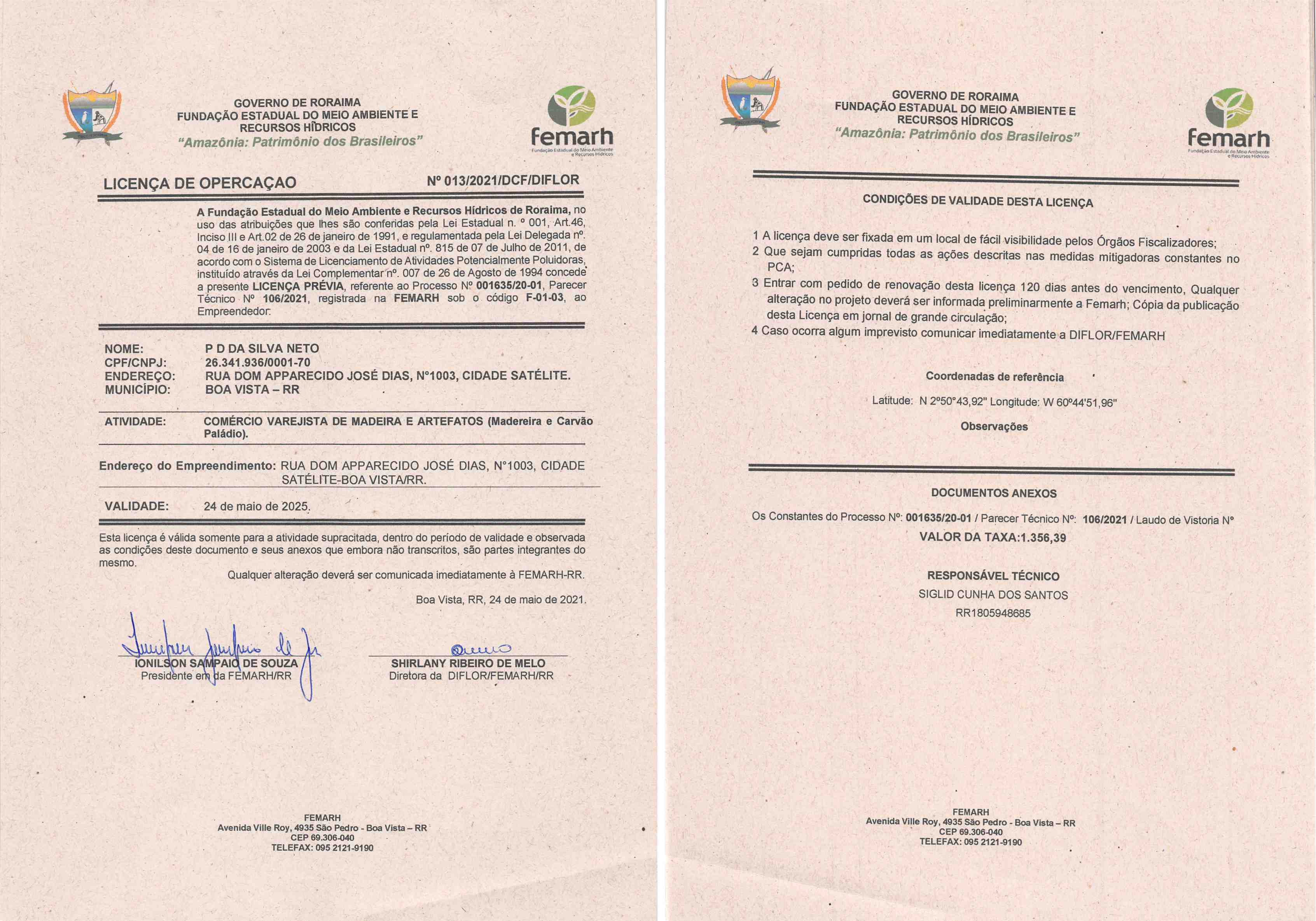 Licença de Operação LO Nº 013/2021/DCF/DIFLOR