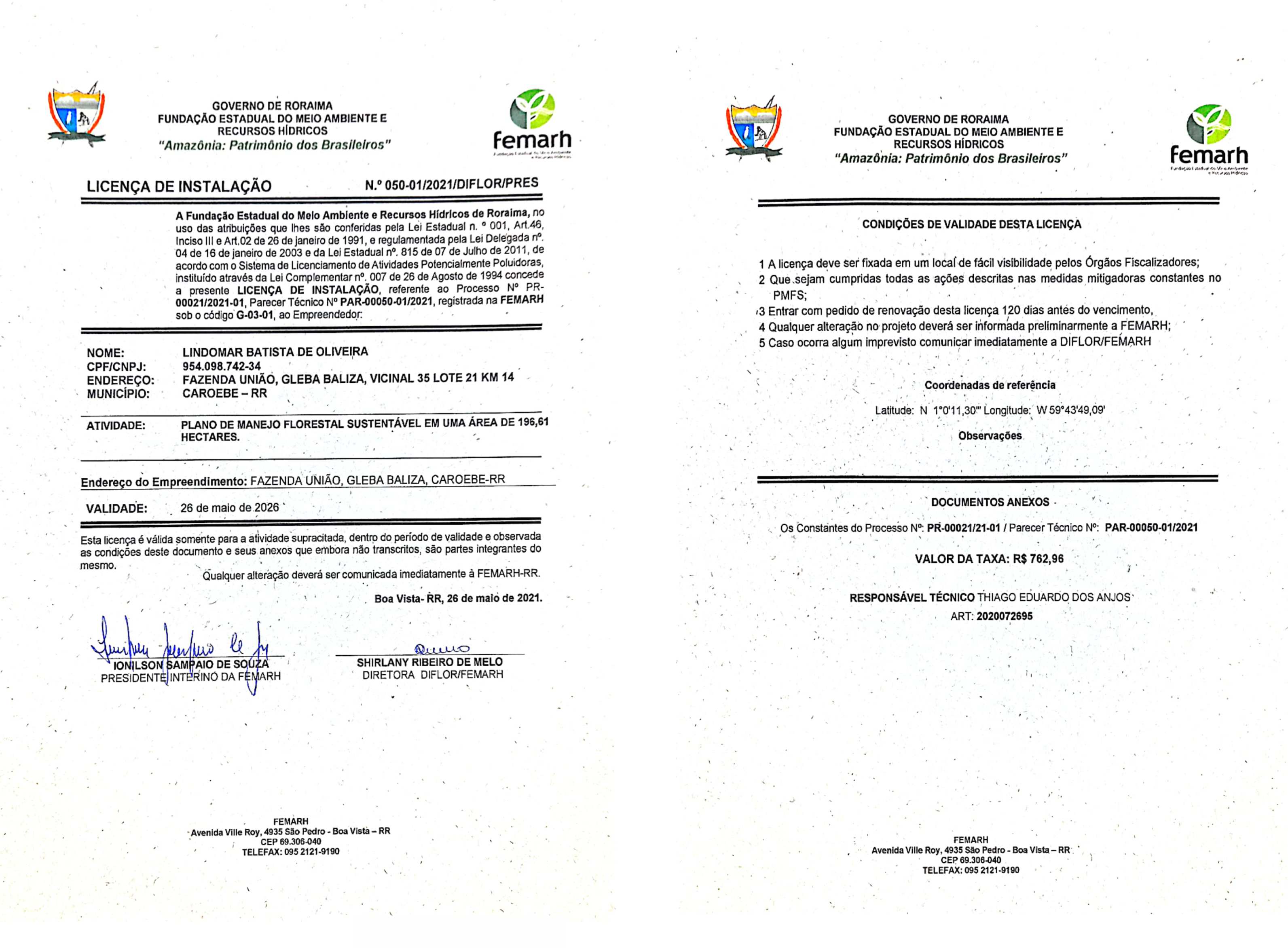 Licença de Instalação Nº 050-01/2021/DIFLOR/PRES