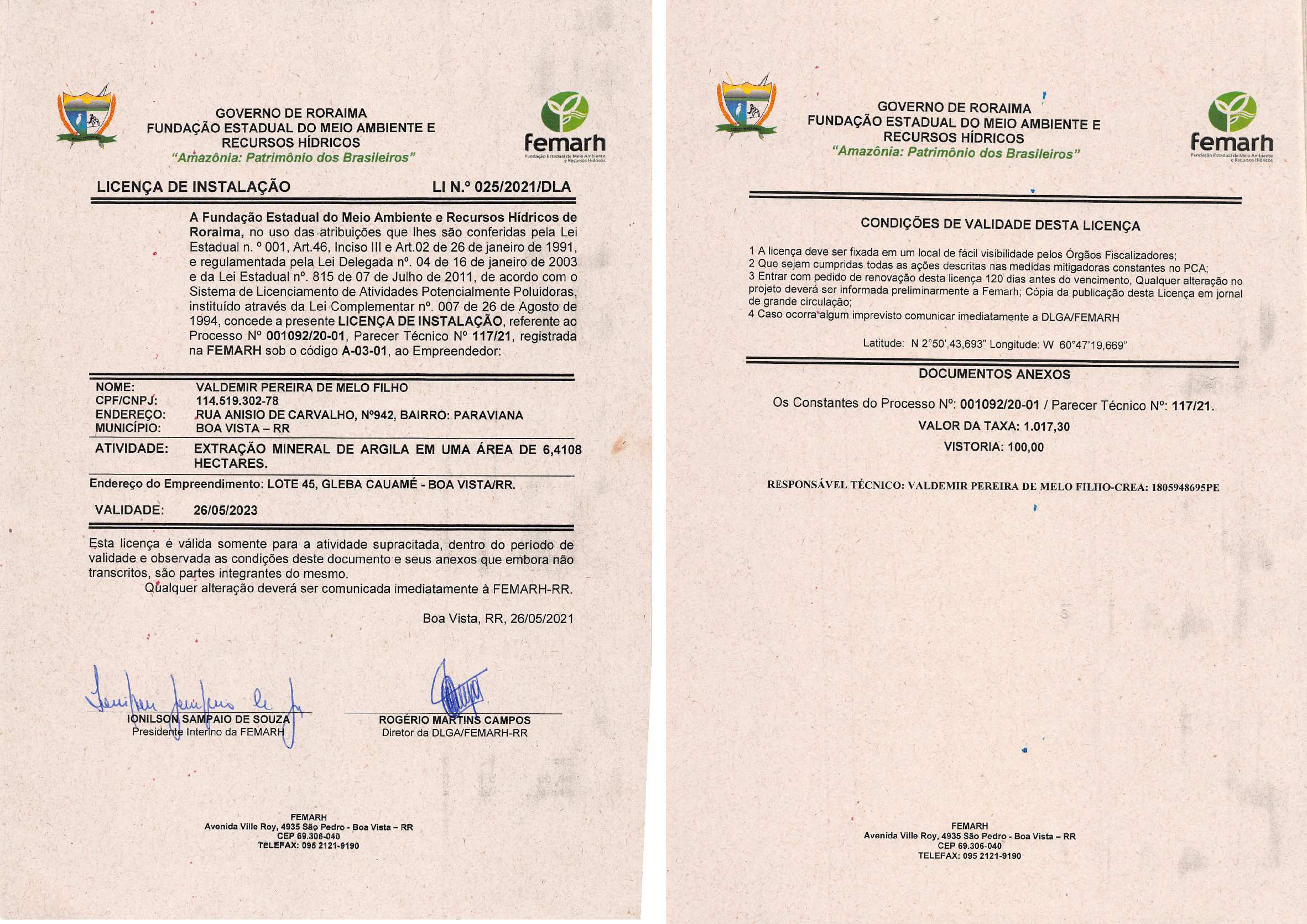 Licença de Instalação Nº LI 025/2021/DLA