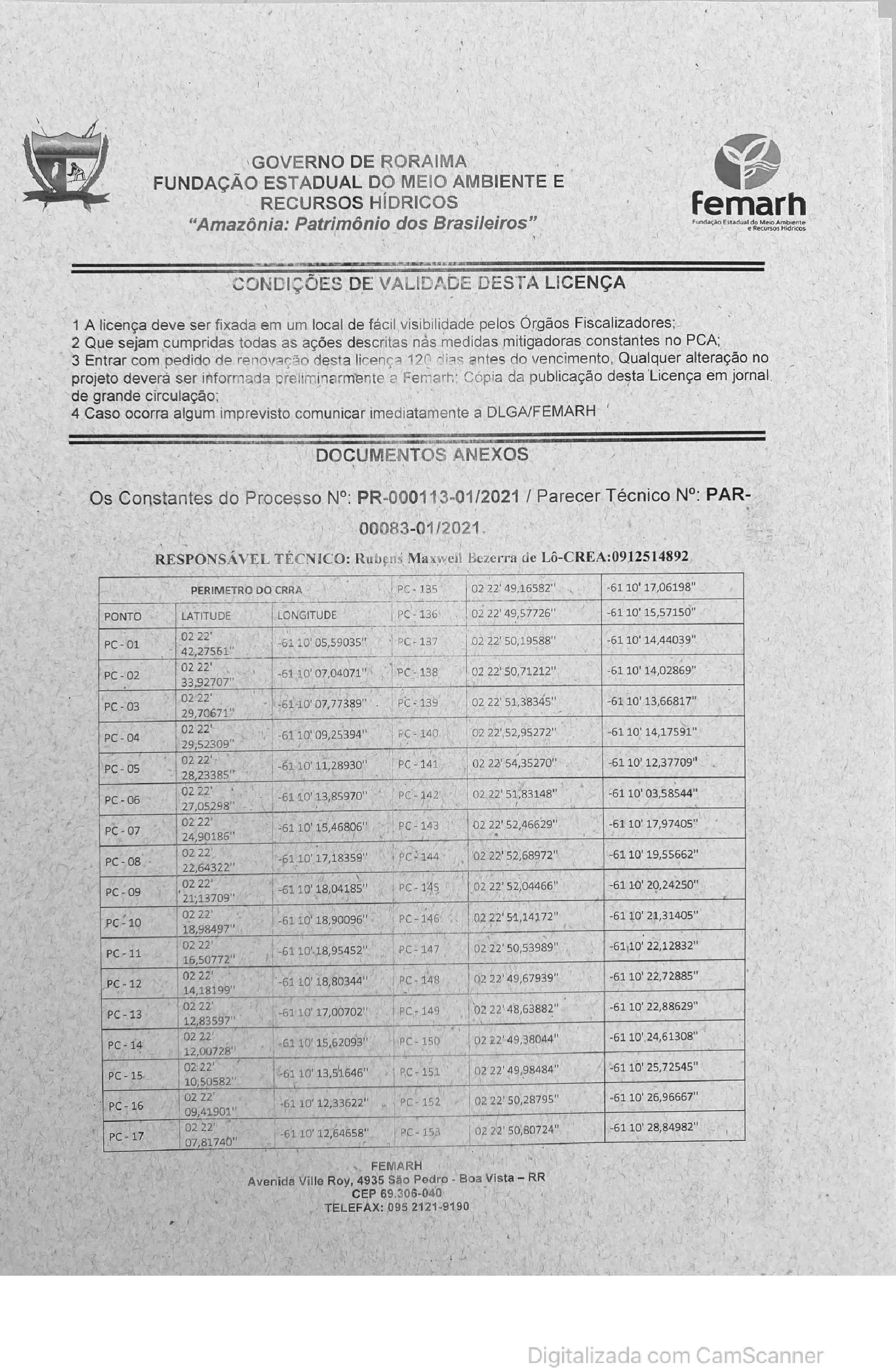 Certificado Roraimense de Regularidade Ambiental - CRRA Nº 034/2021/DLGA - Folha 02
