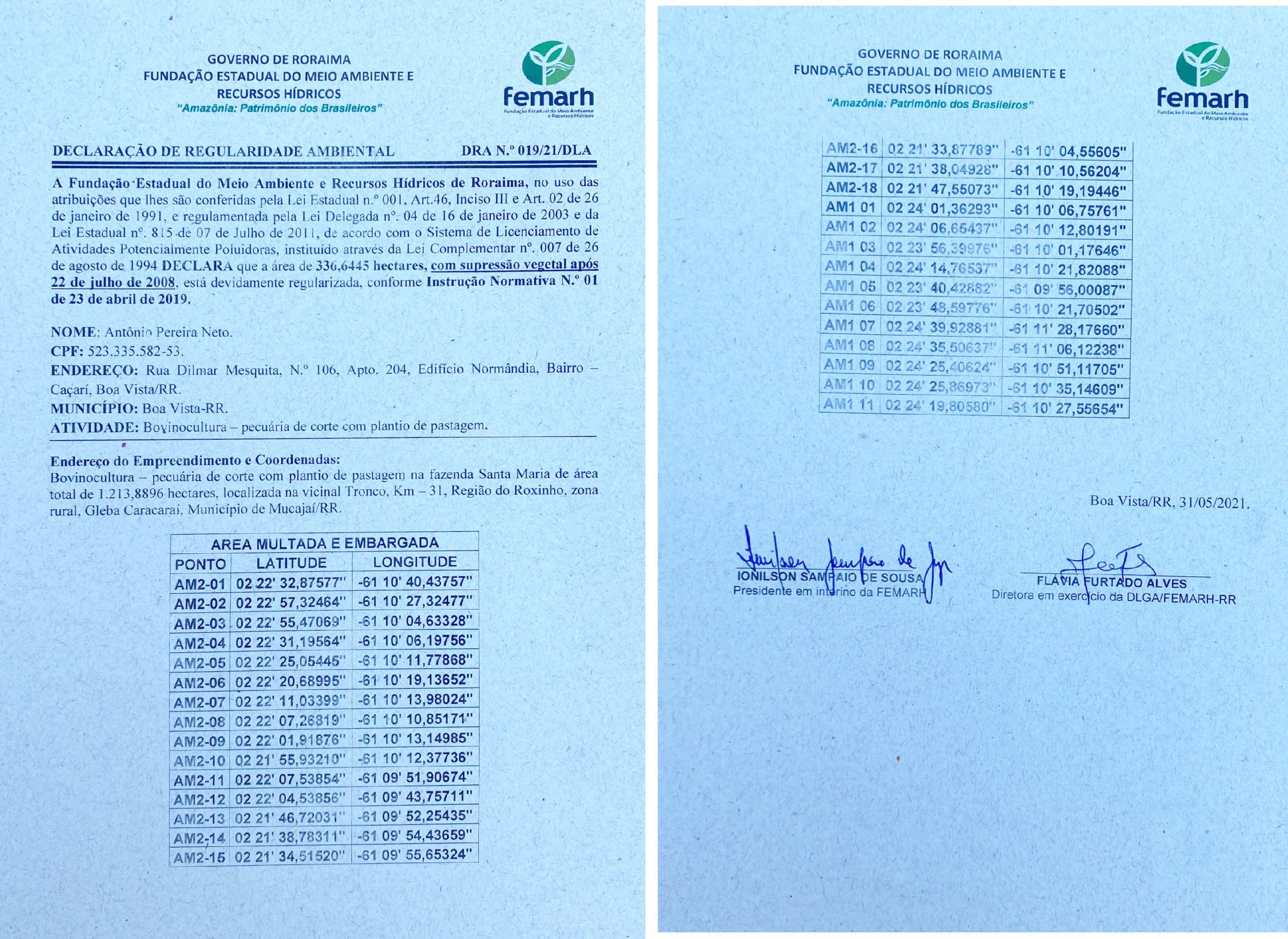 Declaração de Regularidade Ambiental - DRA Nº 019/21/DLA