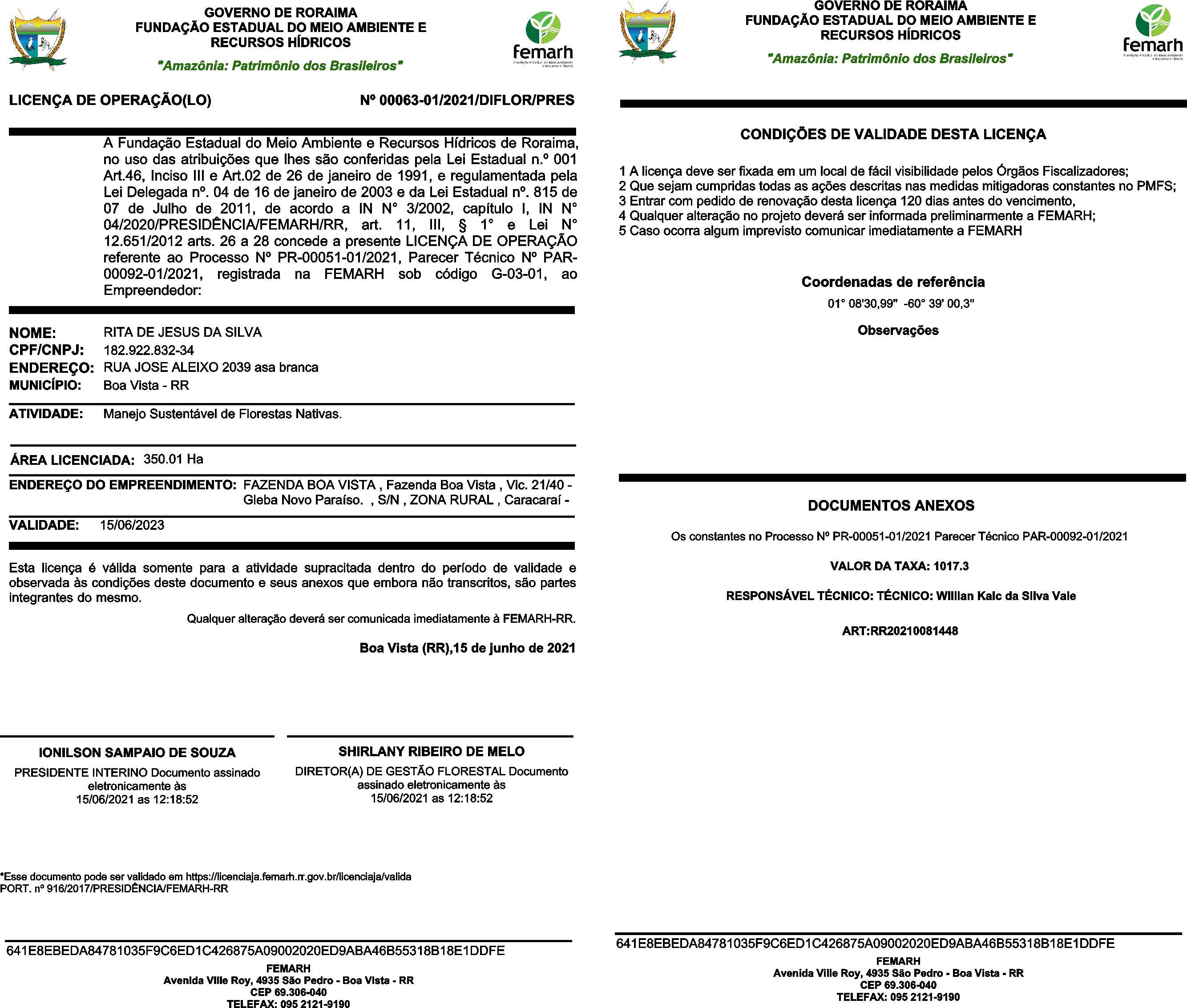 Licenciamento de Operação(LO) Nº 00063-01/2021/DIFLOR/PRES