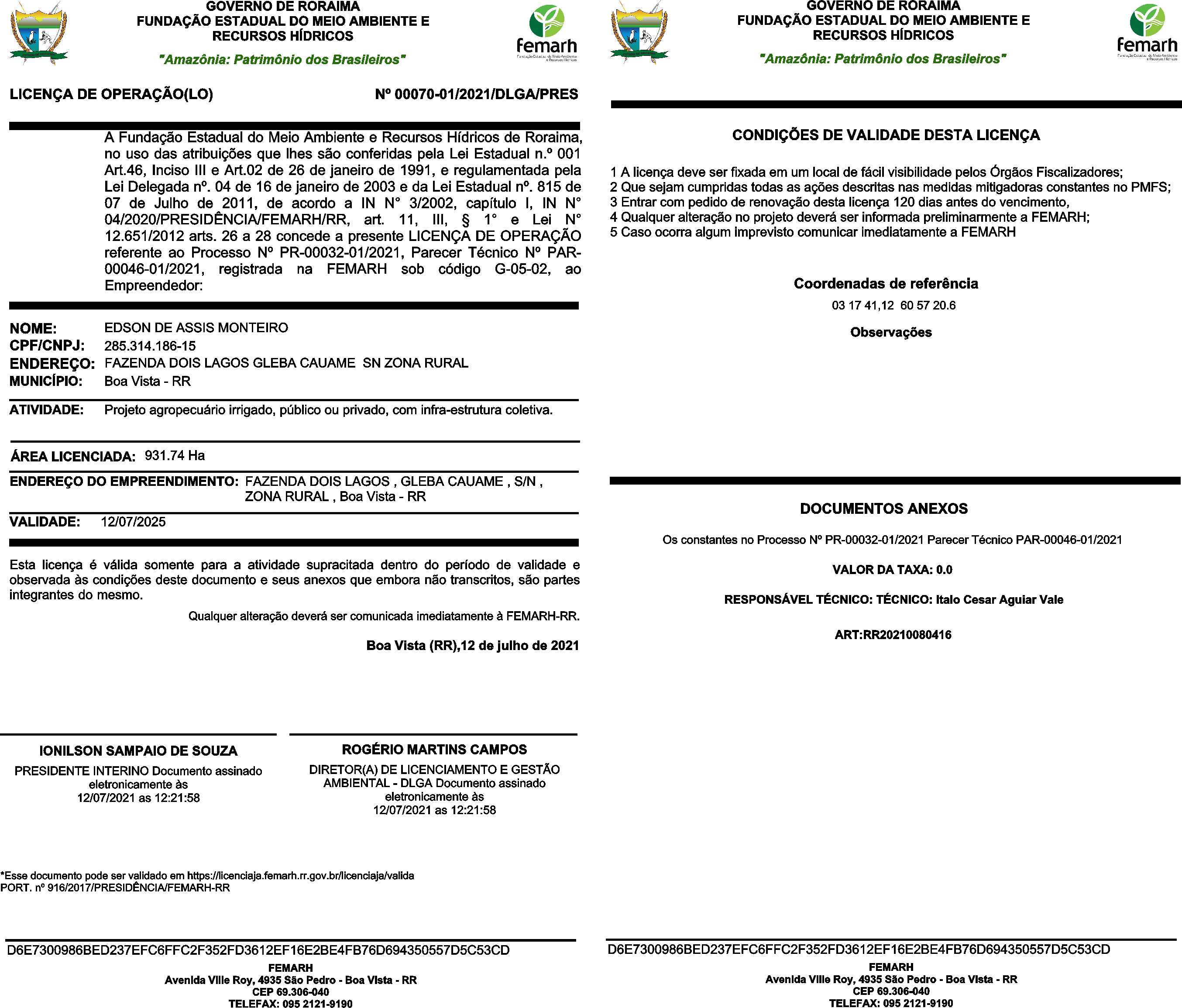 Licença de Operação (LO) Nº 00070-01/2021/DLGA/PRES