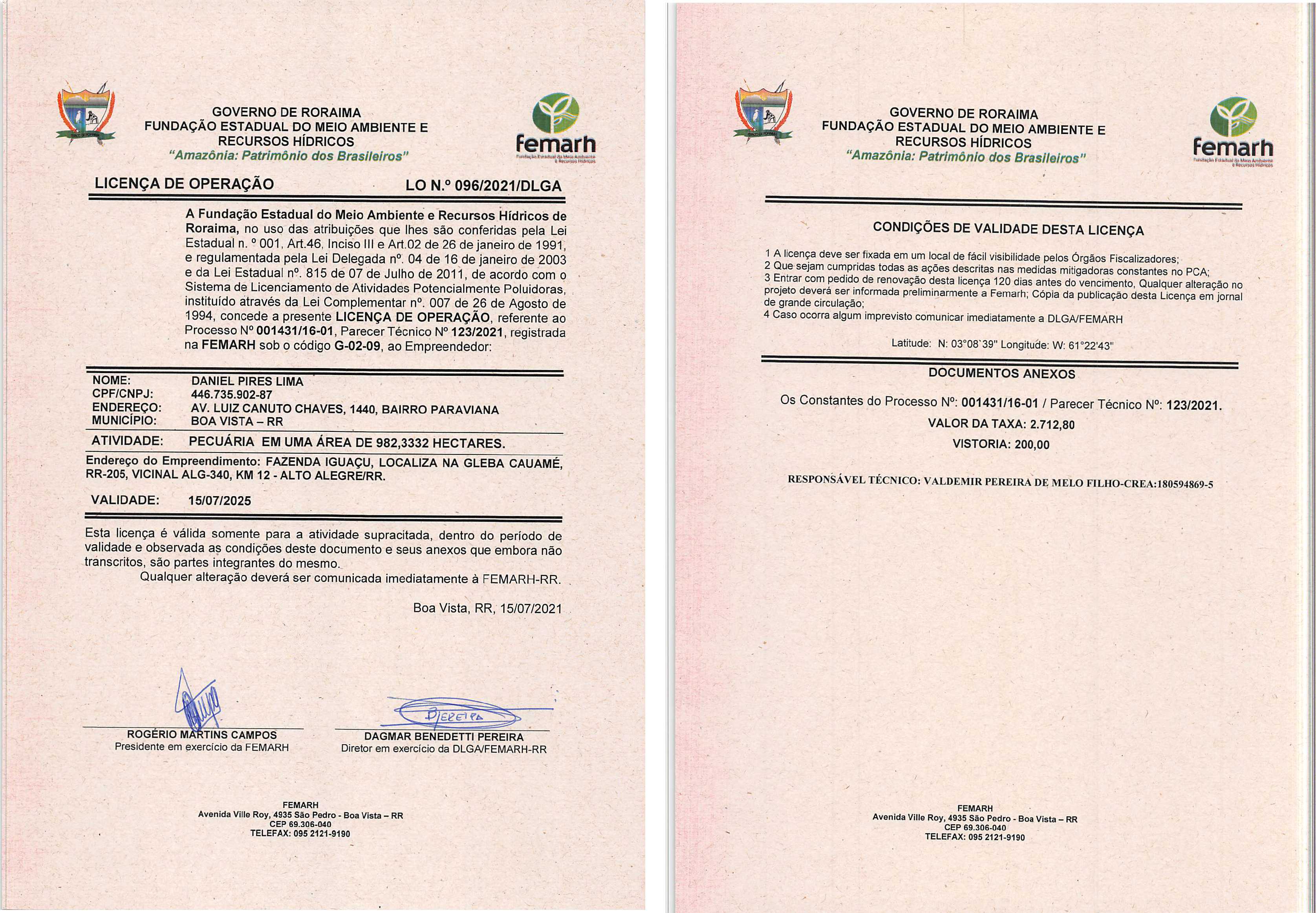 Licença de Operação LO Nº 096/2021/DLGA