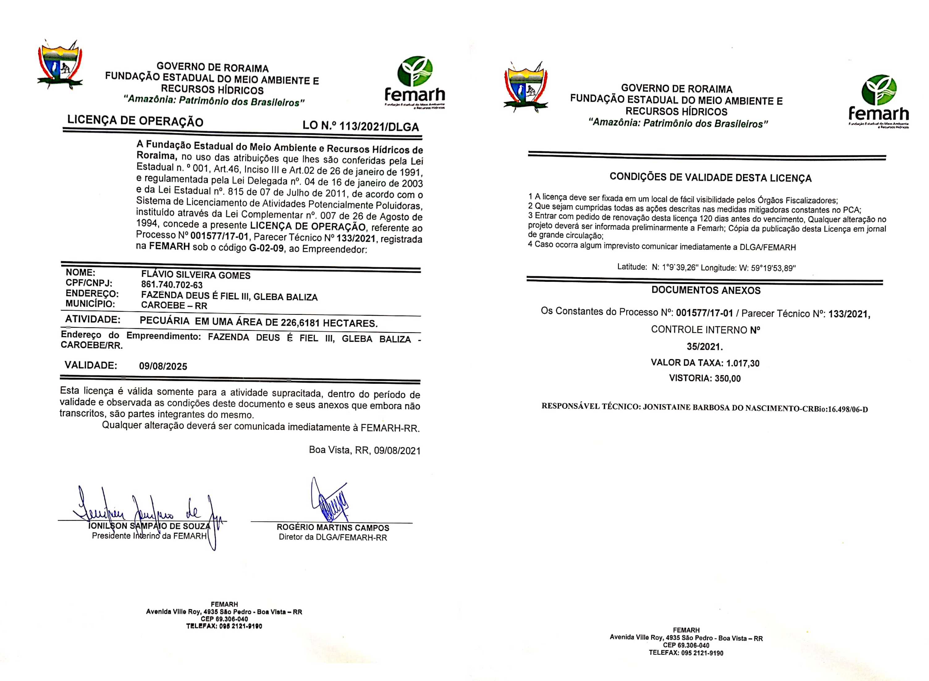 Licença de Operação LO Nº 113/2021/DLGA