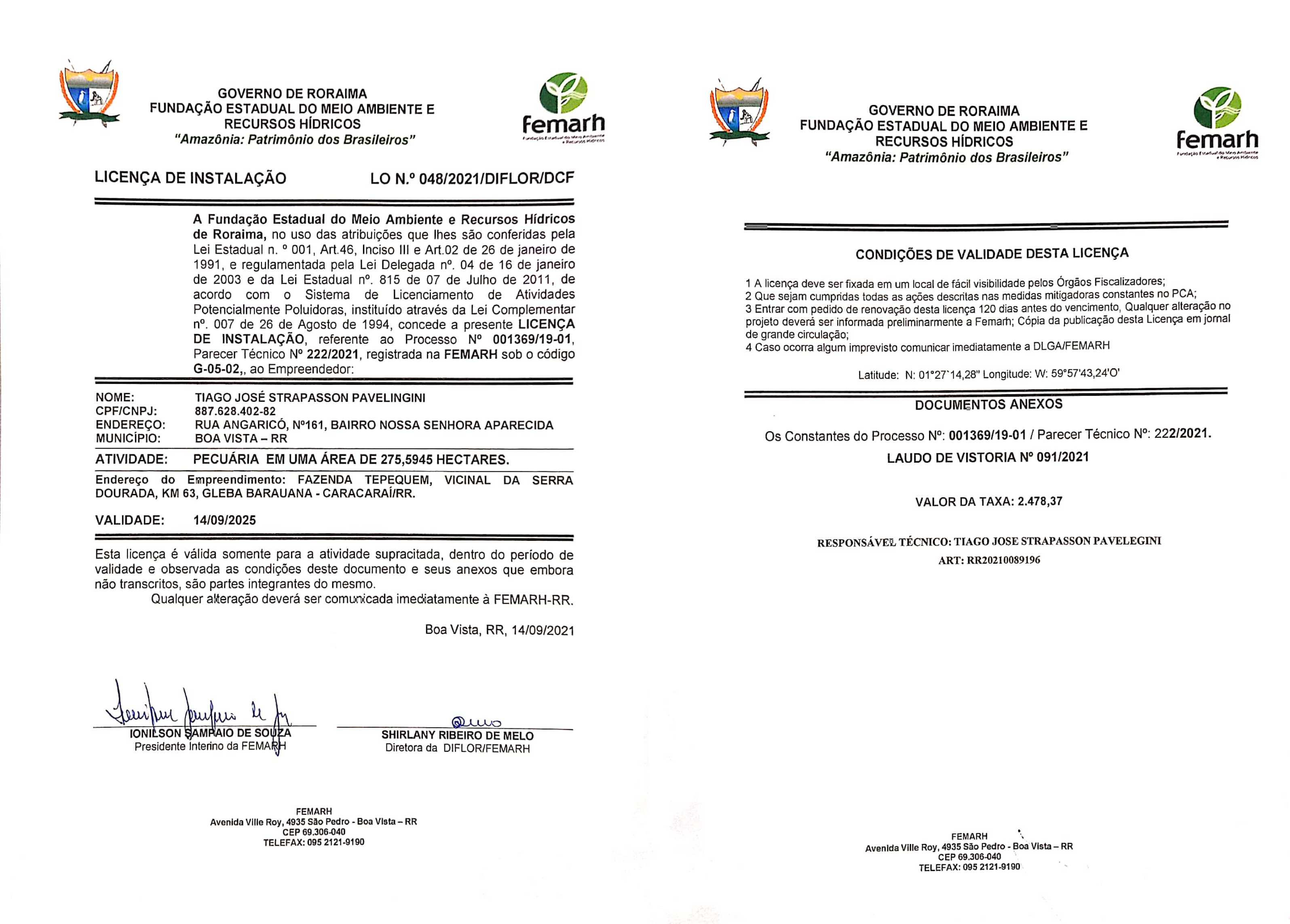 Licença de Instalação Nº 0048/2021/DIFLOR/DCF