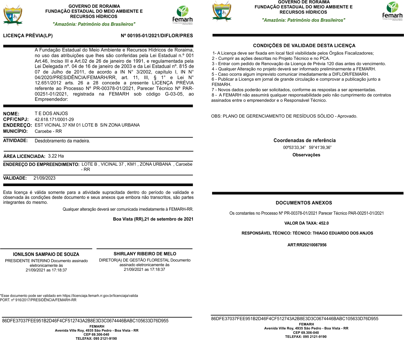 Licença Prévia (LP) Nº 00195-01/2021/DIFLOR/PRES