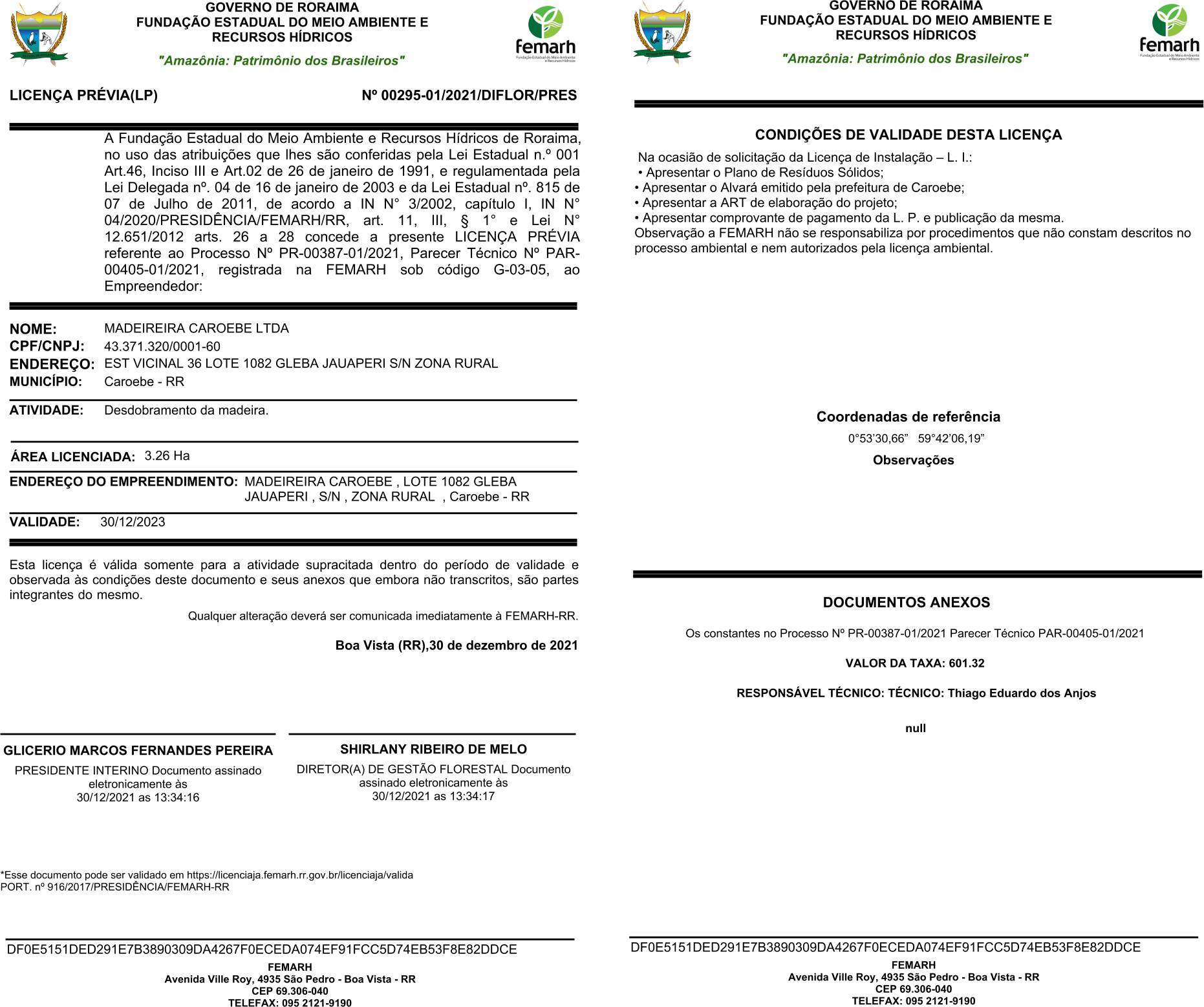 Licença Prévia LP Nº 00295-01/2021/DIFLOR/PRES