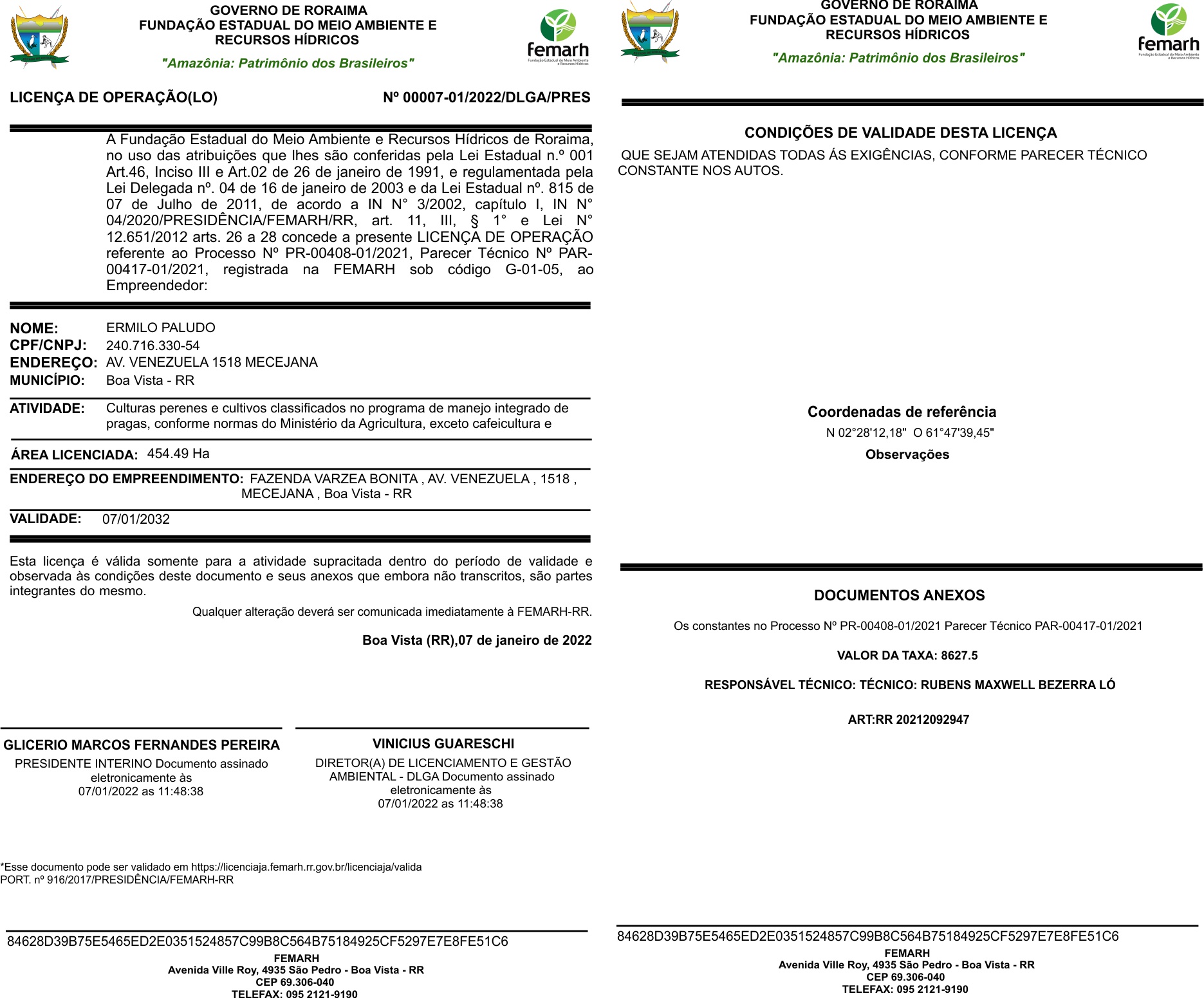 Licença de Operação - Nº 00007-01/2022/DLGA/PRES