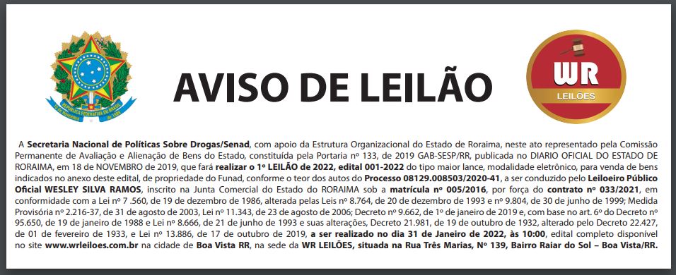 AVISO DE LEILÃO - SENAD/RR