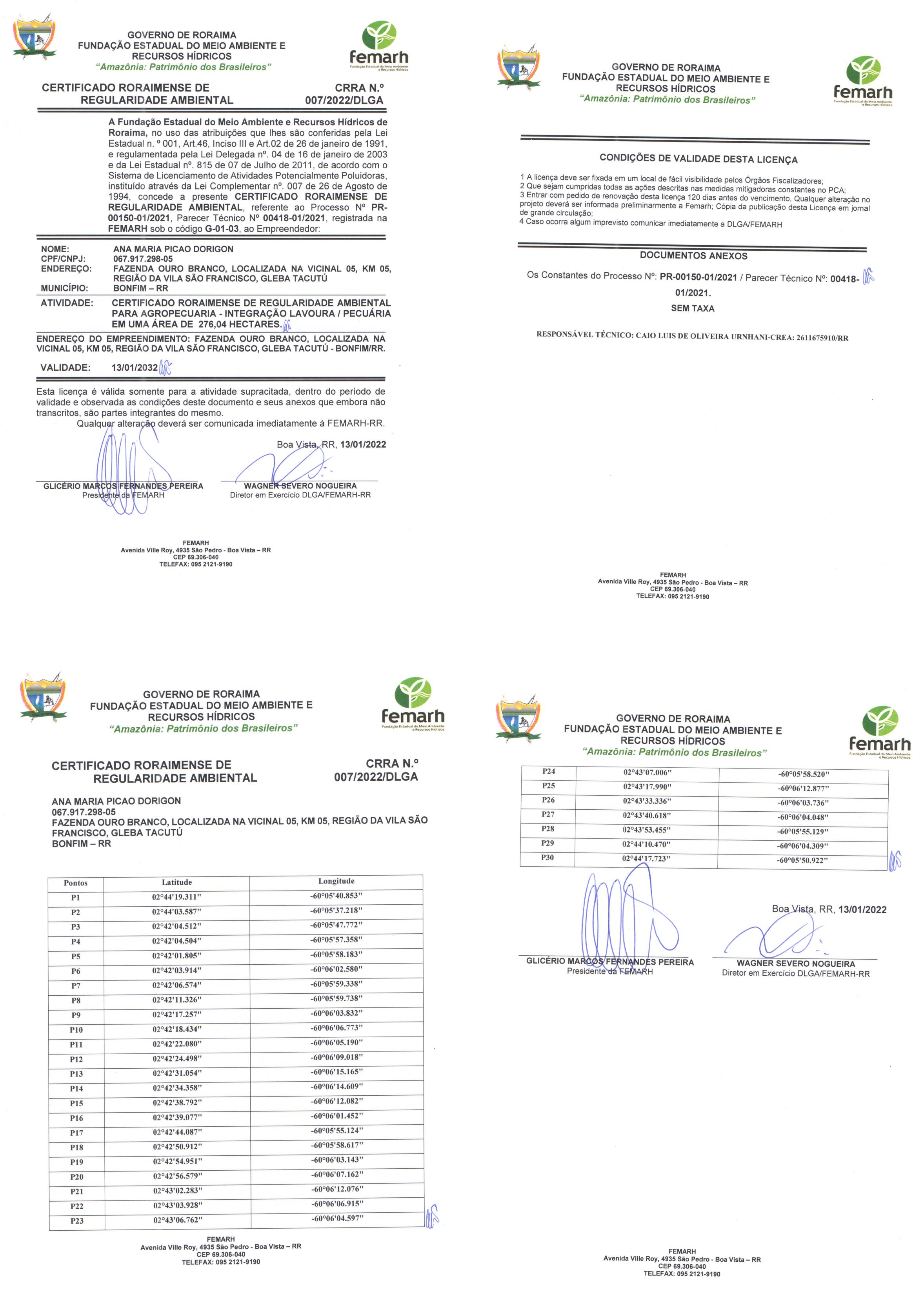 Certificado Roraimense de Regularidade Ambiental - CRRA Nº 007/2022/DLGA
