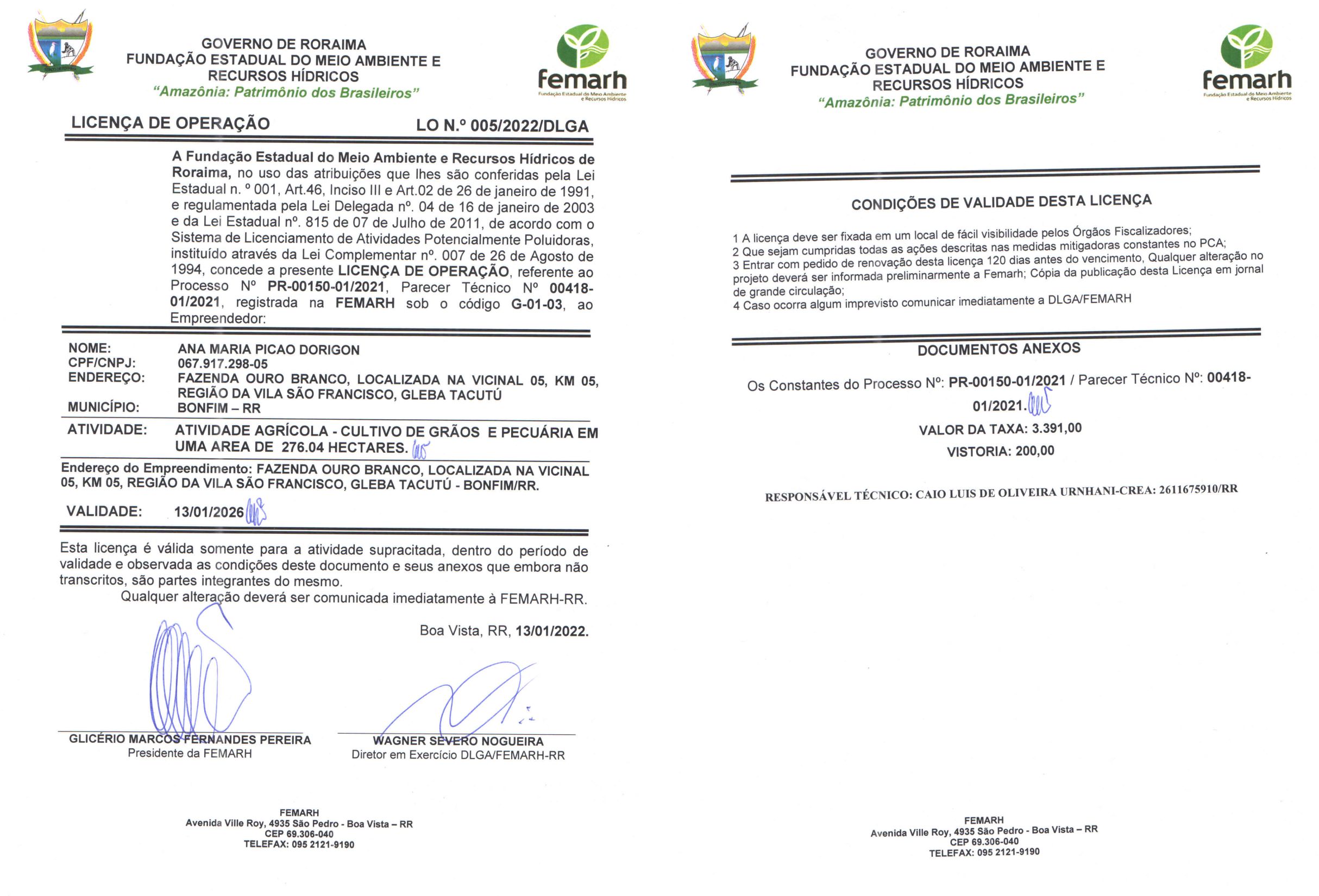 Licença de Operação LO Nº 005/2022/DLGA