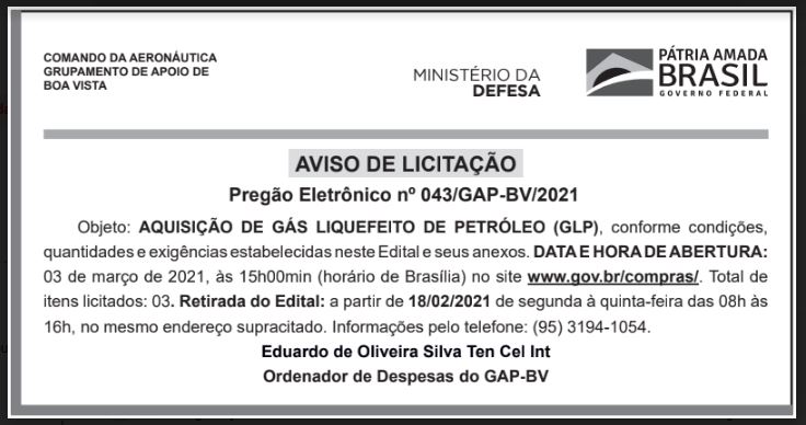 Aviso de Licitação - Pregão Eletrônico nº 043/GAP-BV/2021