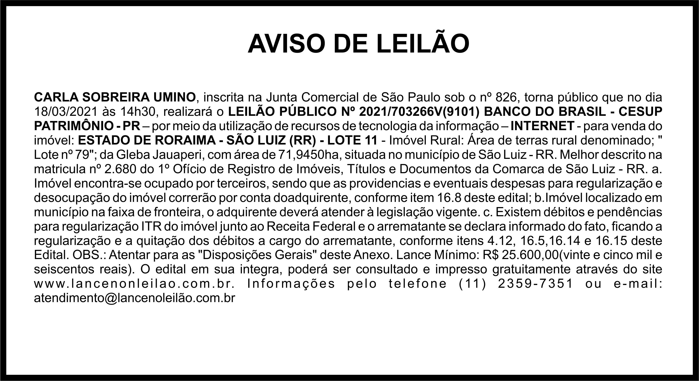Aviso de Leilão - Leilão de Imóveis do Banco do Brasil