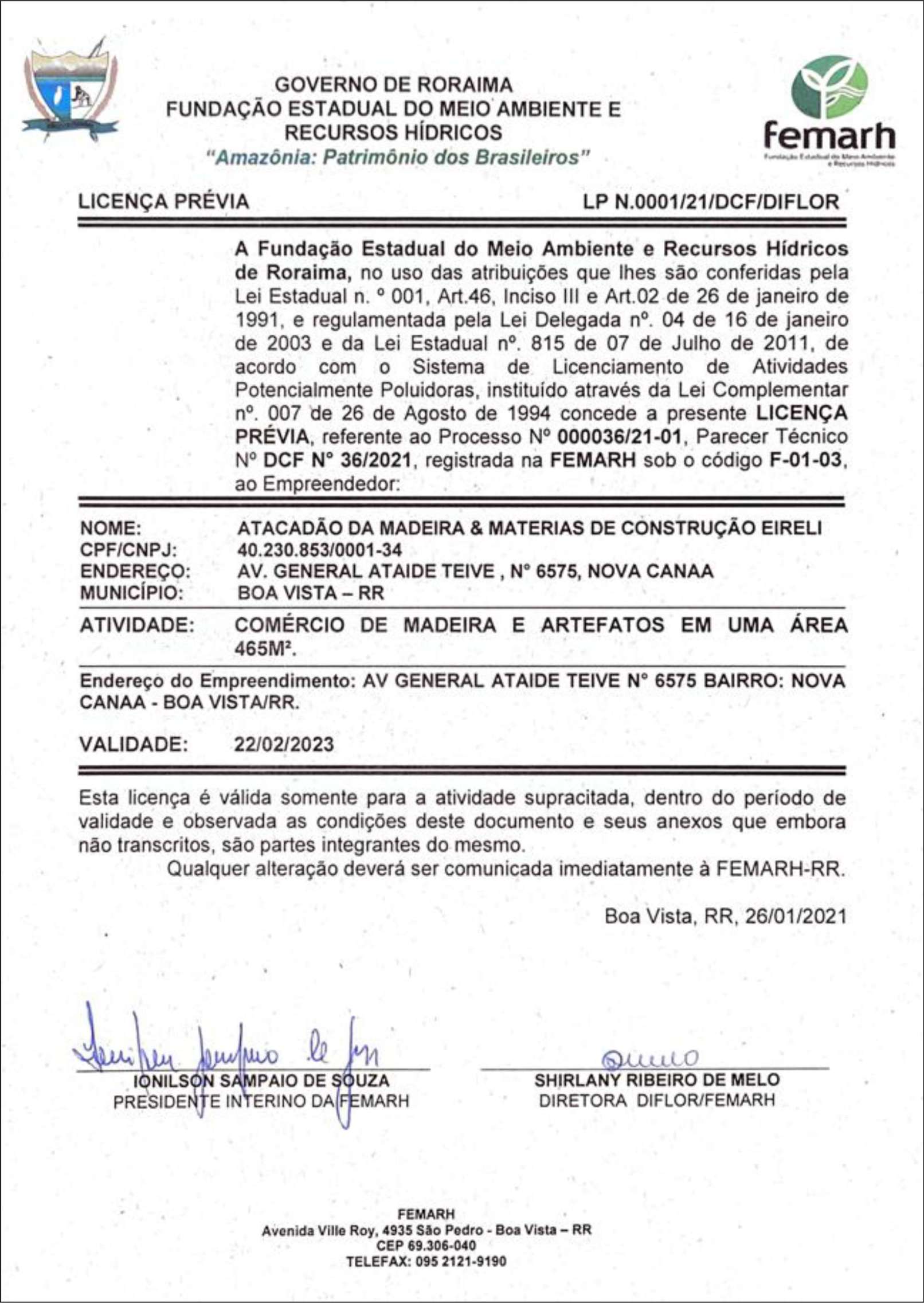 Licença Prévia Nº LP 0001/21/DCF/DIFLOR