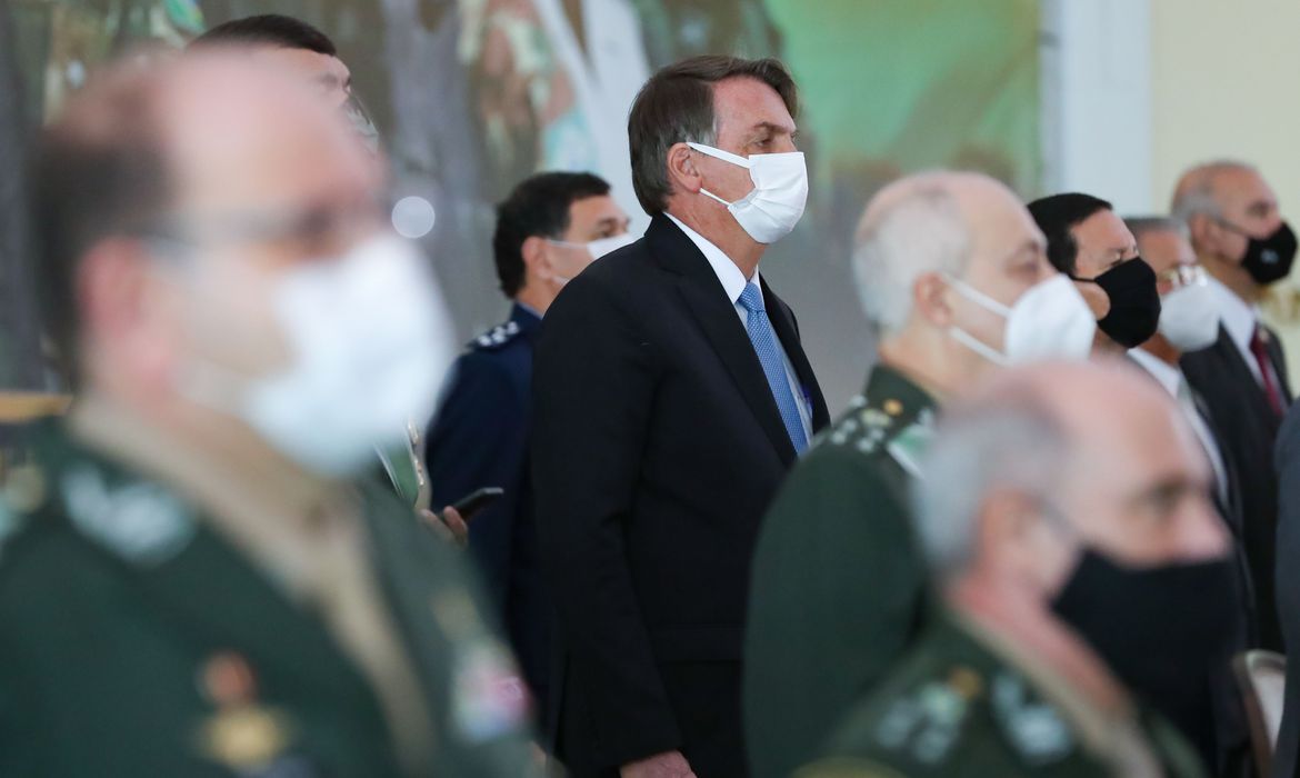 O presidente Jair Bolsonaro participou hoje (12) da solenidade de promoção de oficiais-generais do Exército, em Brasília. Ao parabenizar os recém-promovidos, Bolsonaro disse que a confiança na corporação, no “momento difícil que nós atravessamos”, dá “a certeza de que o Brasil está no caminho certo e brevemente voltará ao patamar da paz, da tranquilidade e do progresso”.