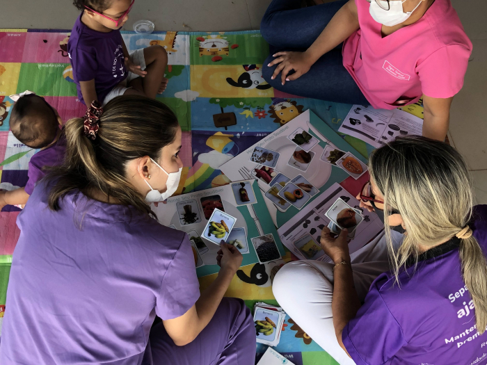 "Nós estamos apresentando alimentos que podem ser introduzidos na alimentação da criança como frutas e sopinha salgada, e ensinando o modo de preparar e oferecer para a criança. Além disso, reforçamos a orientação de que a amamentação deve ser exclusiva até o sexto mês e, após isso, a introdução de novos alimentos como as frutas e a sopinha”, ressaltou.
