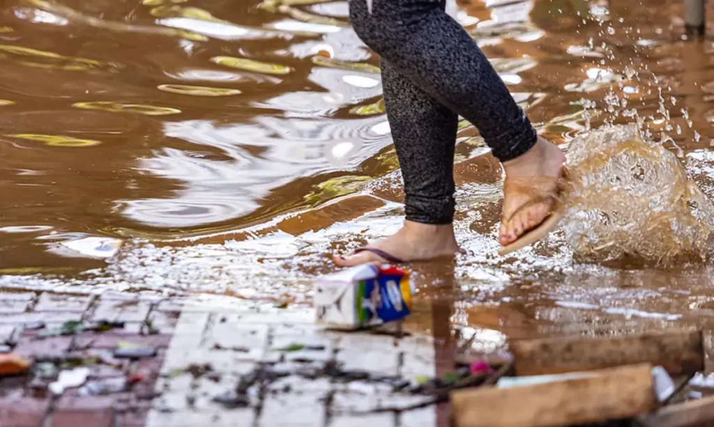 A água está em tendência de baixa na capital Porto Alegre, que viveu semanas de enchentes. O nível do Guaíba caiu e está abaixo de 5 metros, marca inferior às registradas há alguns dias, porém ainda acima da cota de inundação (3 metros).