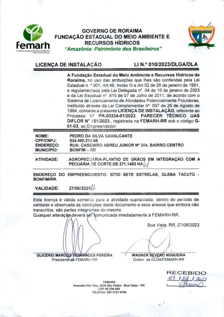 Licença de Operação – L.O. Nº 028/2024/DCF/DIFLOR