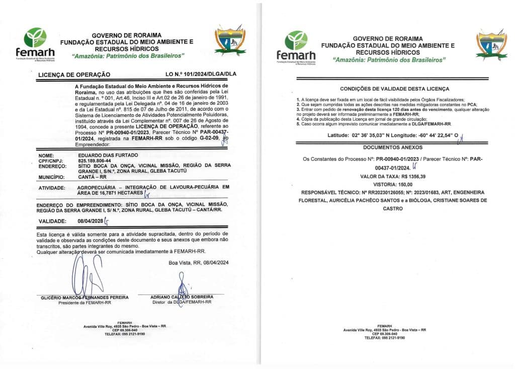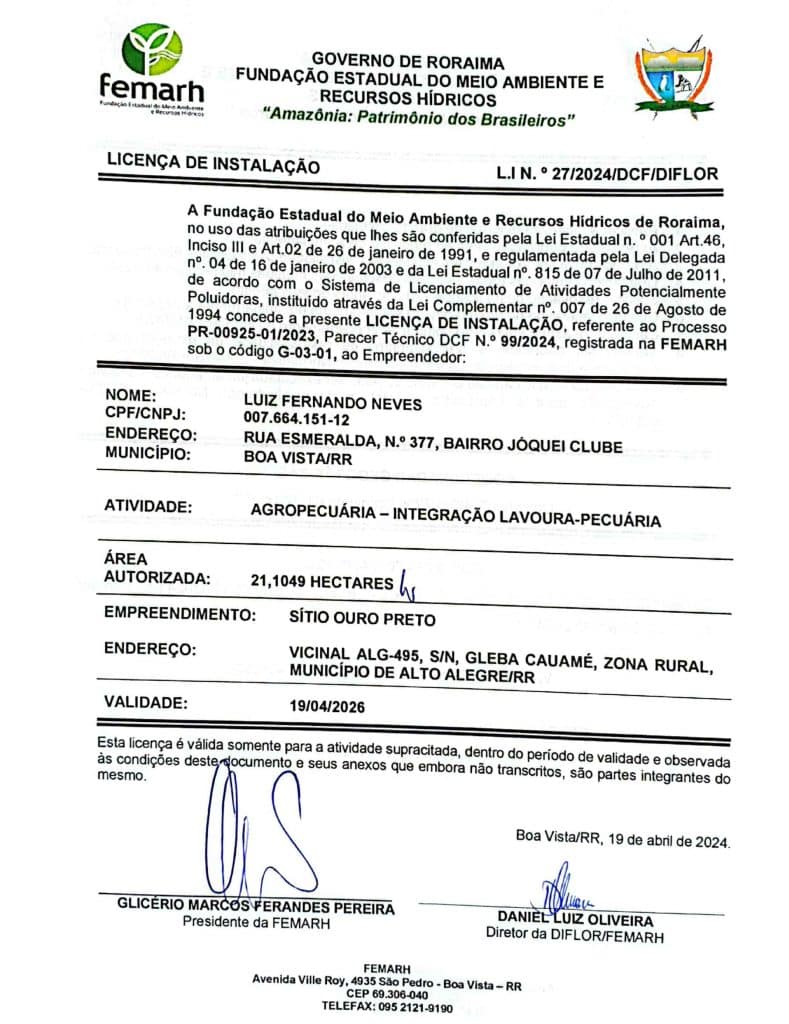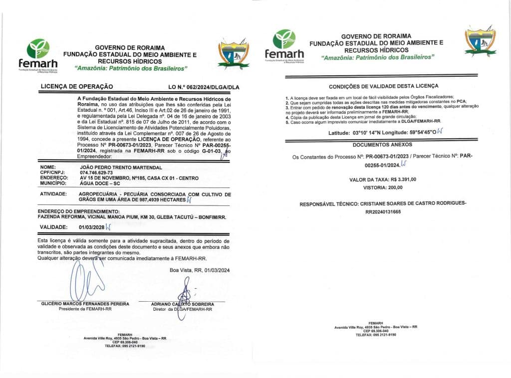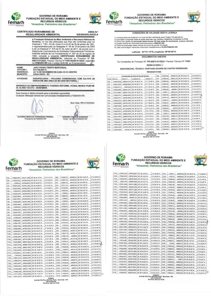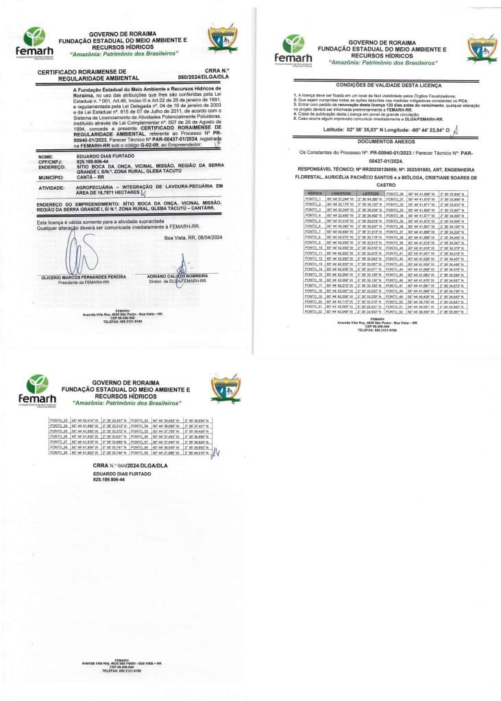 Certificado Roraimense de Regularidade Ambiental – CRRA Nº. 035/2024/DLGA/DLA