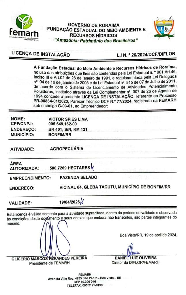 Licença de Instalação – LI Nº 026/2024/DCF/DIFLOR