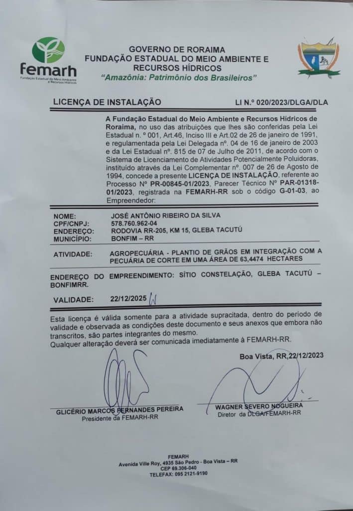 Licença de Instalação – LI Nº 020/2023/DLGA/DLA