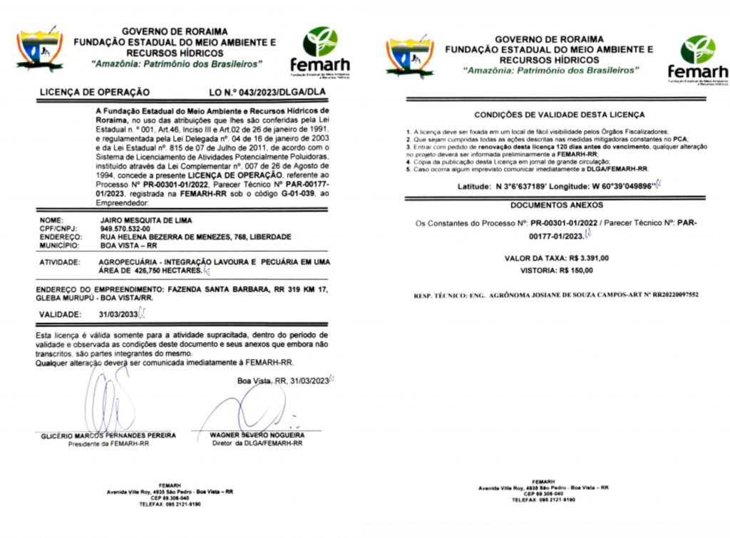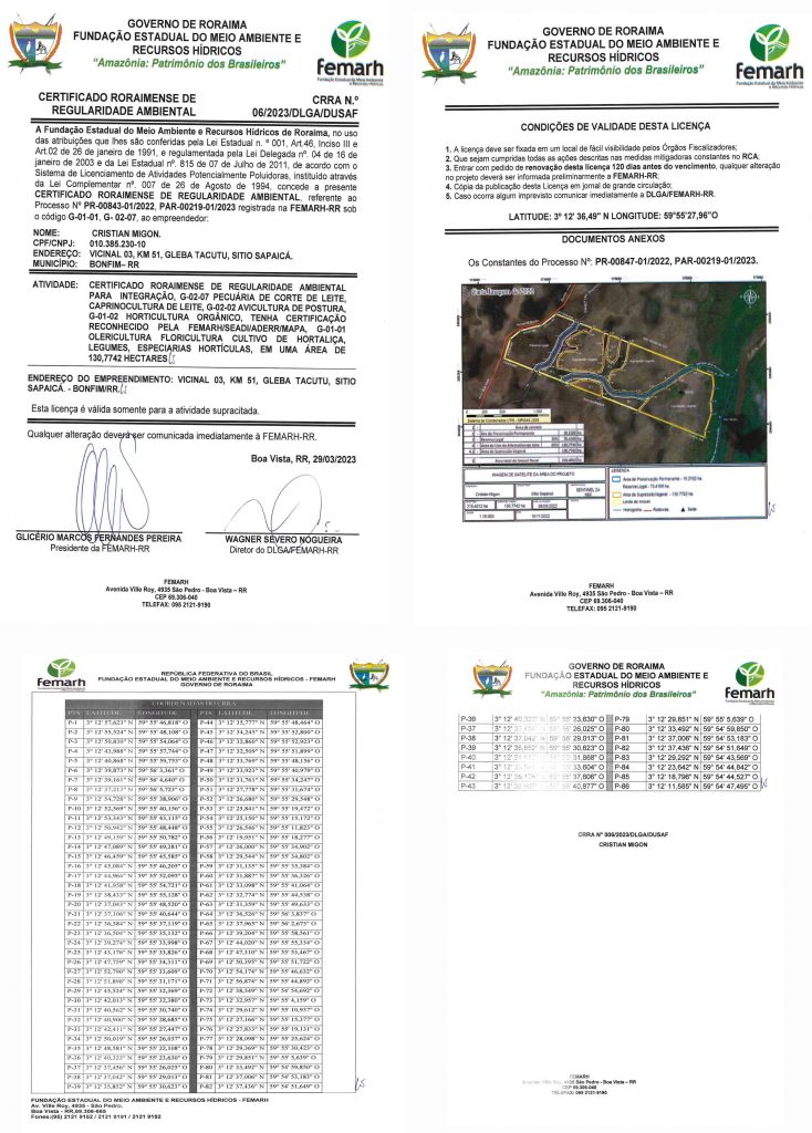 Certificado Roraimense de Regularidade Ambiental – CRRA Nº 06/2023/DLGA/DUSAF