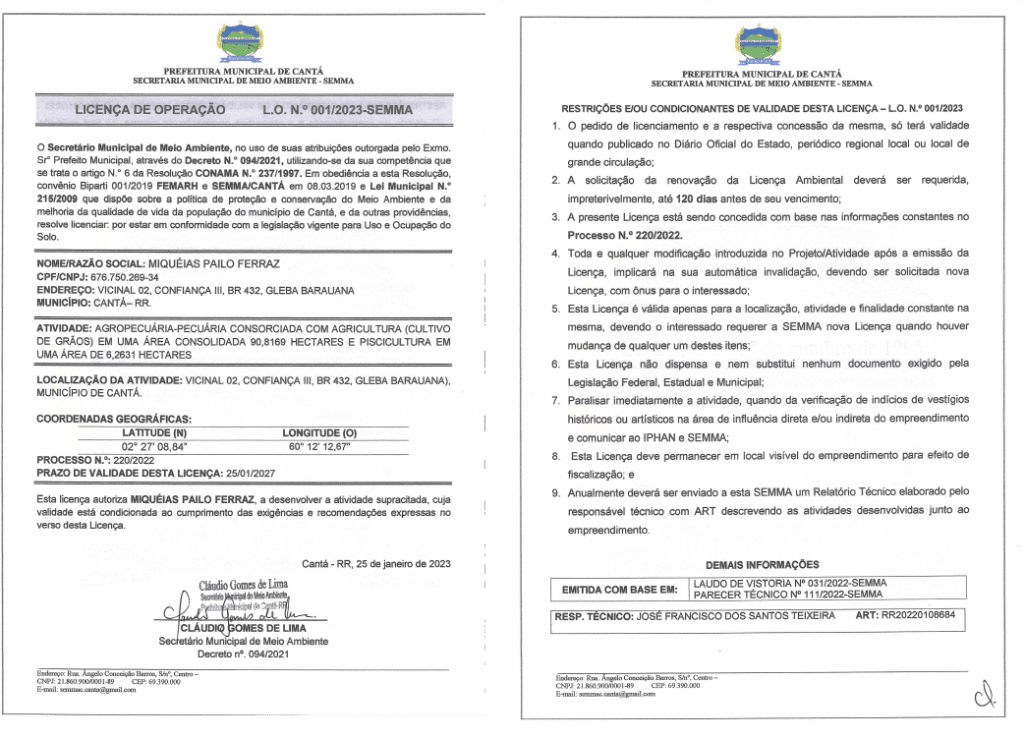 Licença de Operação L.O. N.º 001/2023-SEMMA