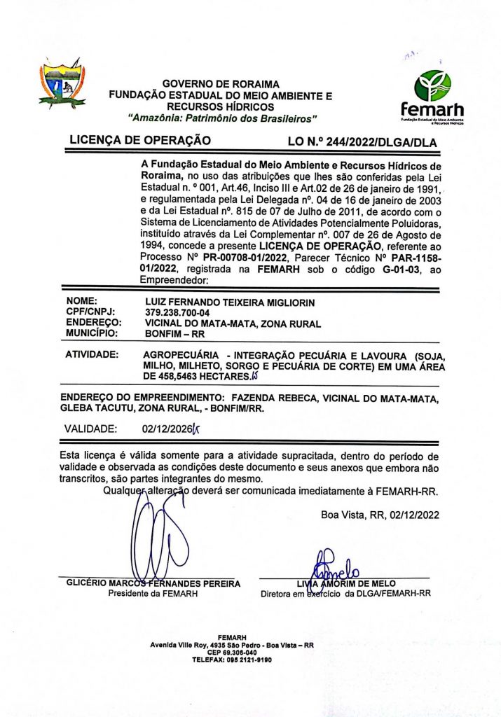 Licença de Operação – LO Nº. 244/2022/DLGA/DLA