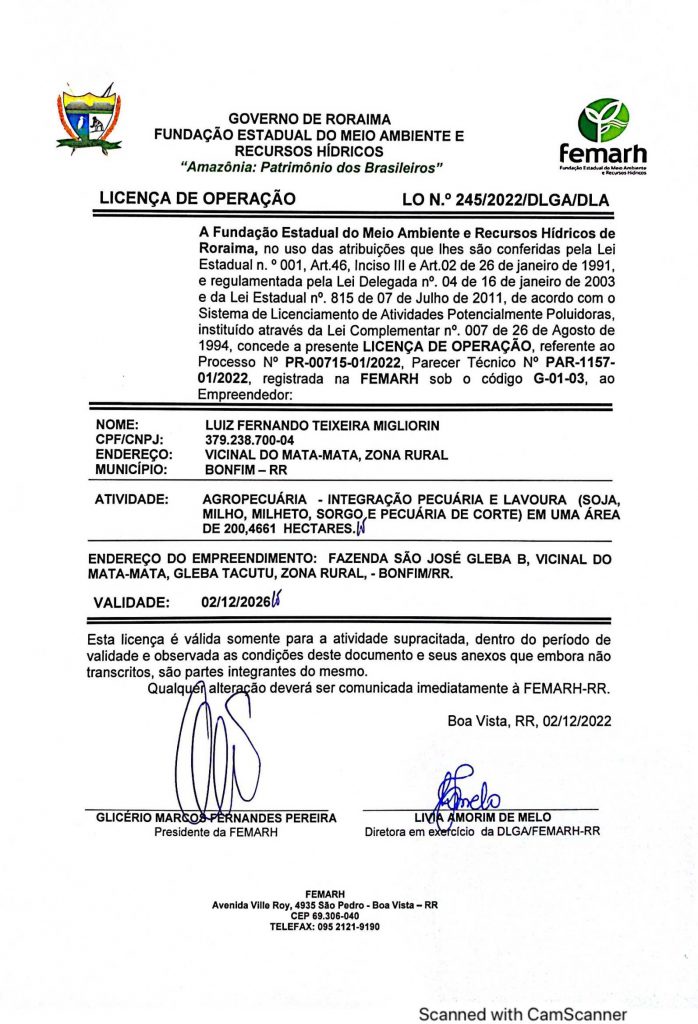 Licença de Operação – LO Nº. 245/2022/DLGA/DLA
