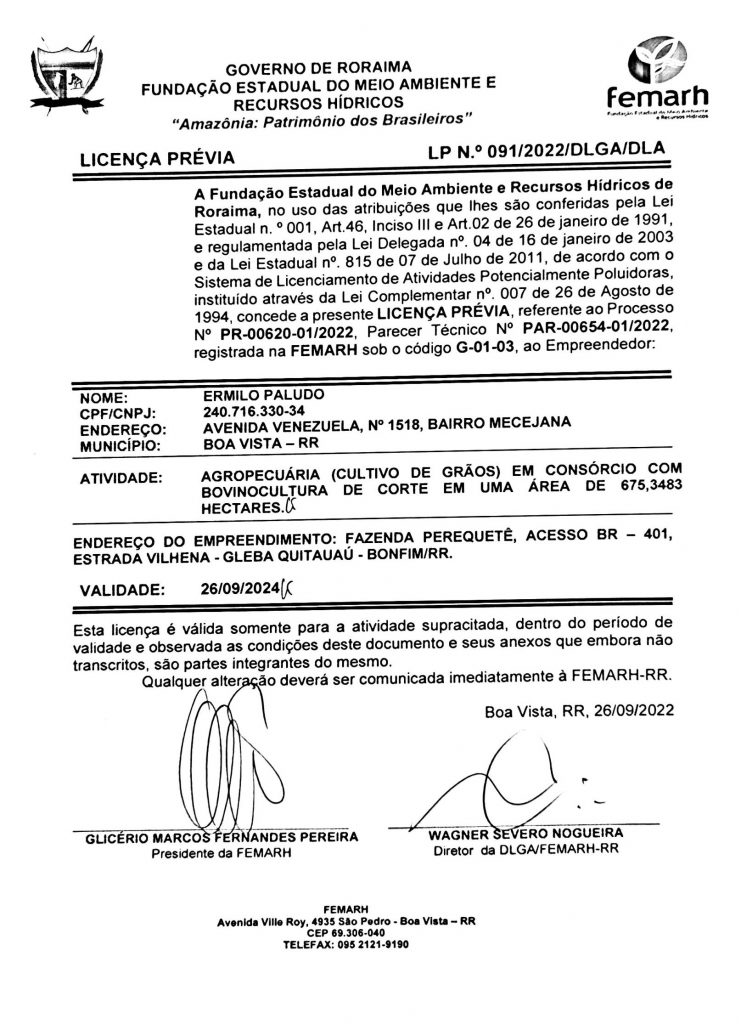Licença Prévia – LP Nº 091/2022/DLGA/DLA