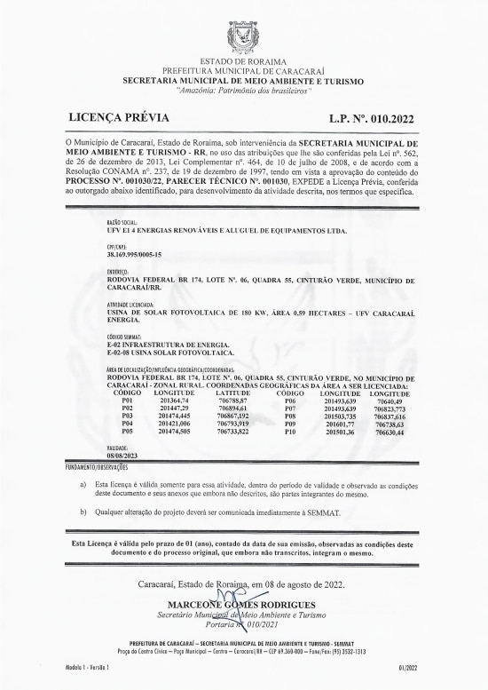 Licença Prévia – L. P. Nº 010.2022