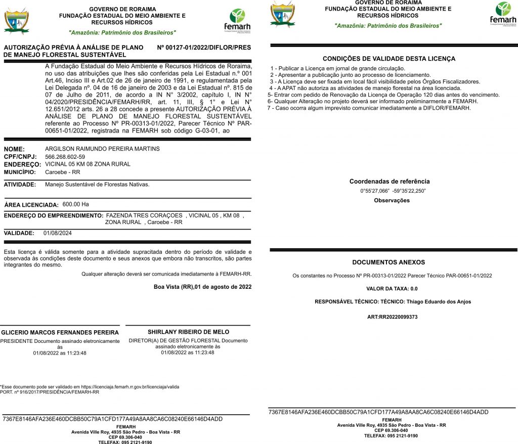 Autorização Prévia à Análise de Plano de Manejo Florestal Sustentável – APAT Nº 00127-01/2022/DIFLOR/PRES