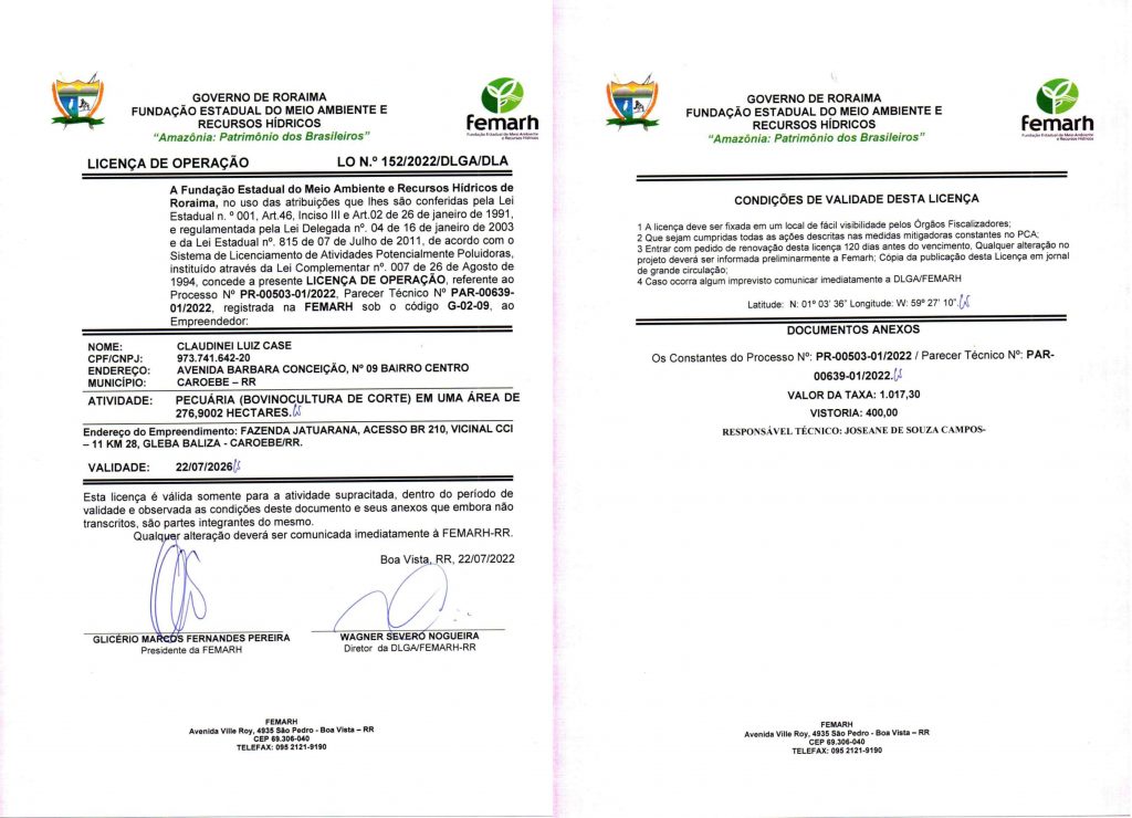 Licença de Operação – LO Nº 152/2022/DLGA/DLA