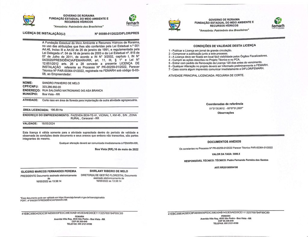 Licença de Instalação – LI Nº 00088-01/2022/DIFLOR/PRES