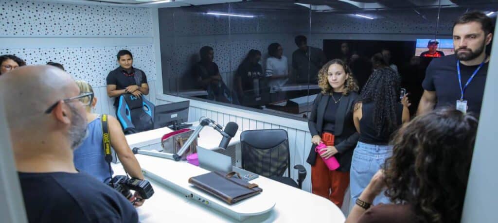 Durante a visita, os estudantes também conheceram os estúdios da TV Assembleia (canal 57.3) e algumas dependências do Parlamento, como o plenário Deputada Noêmia Bastos Amazonas, onde ocorrem as sessões plenárias e outros eventos de grande porte.